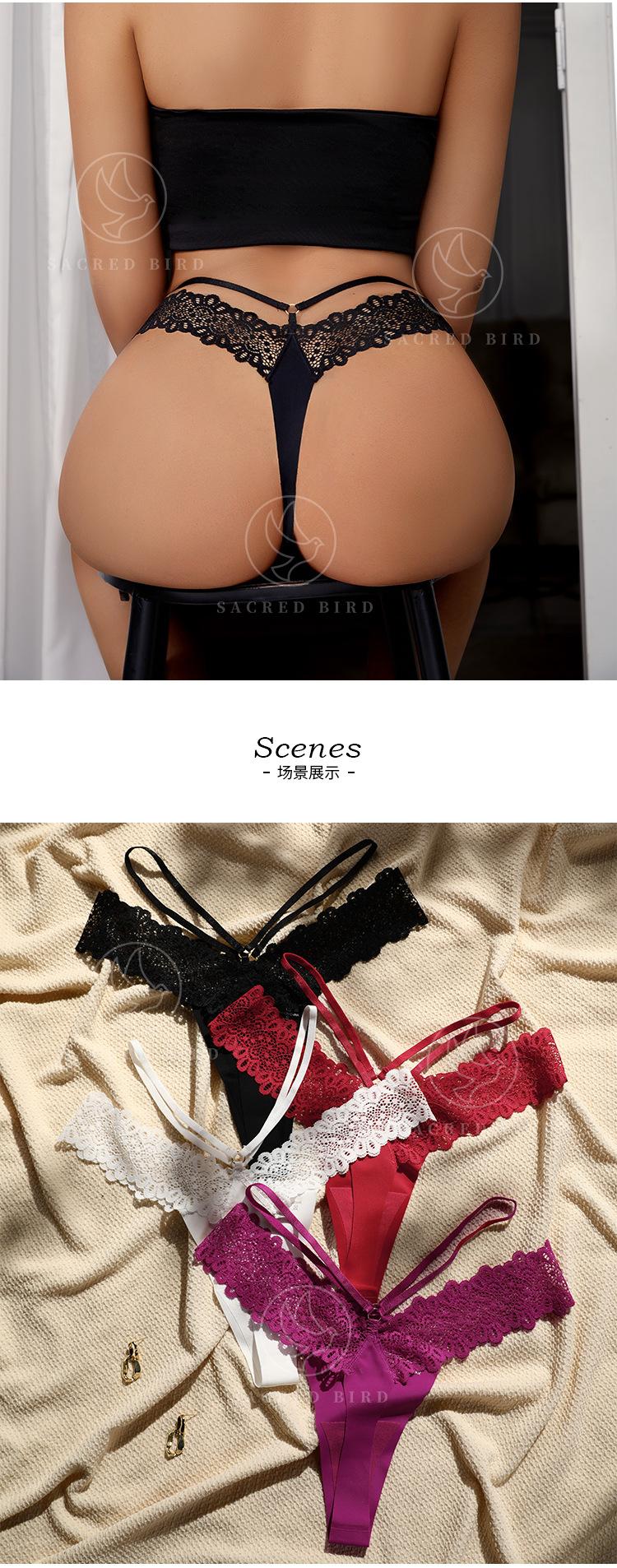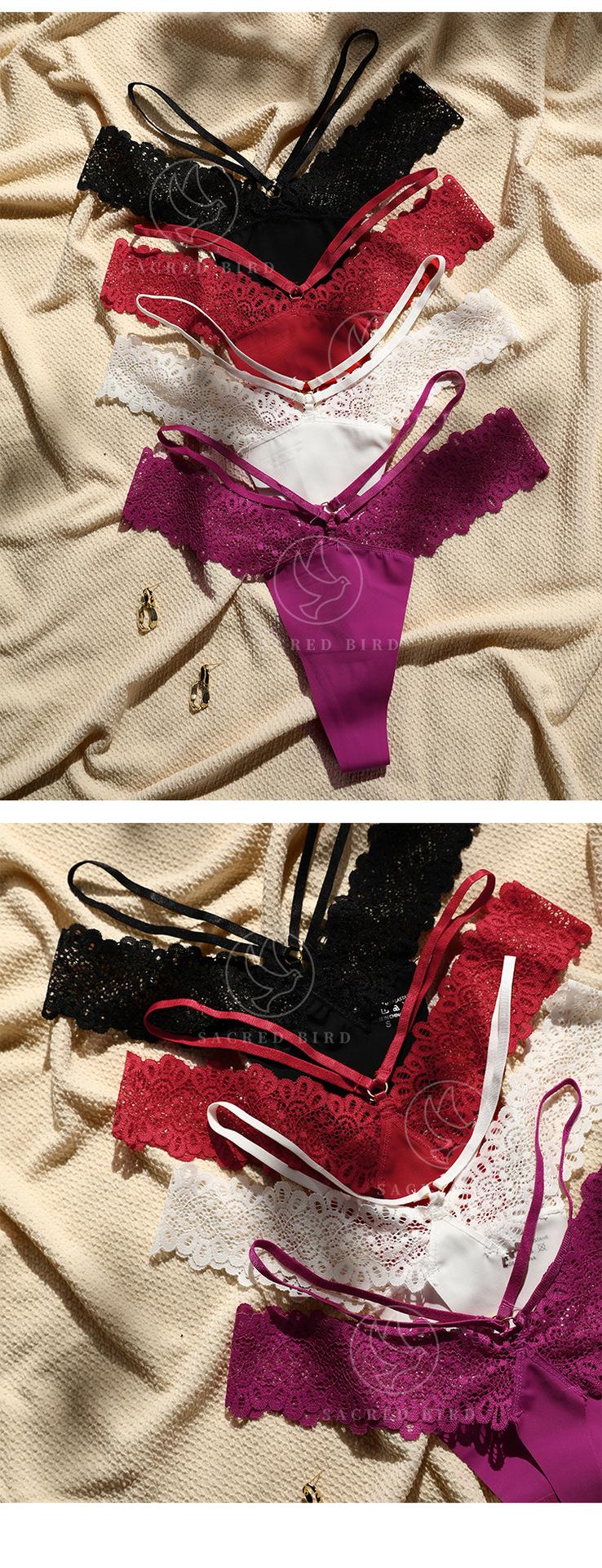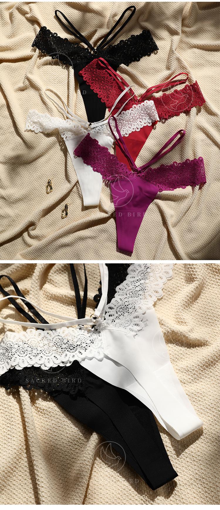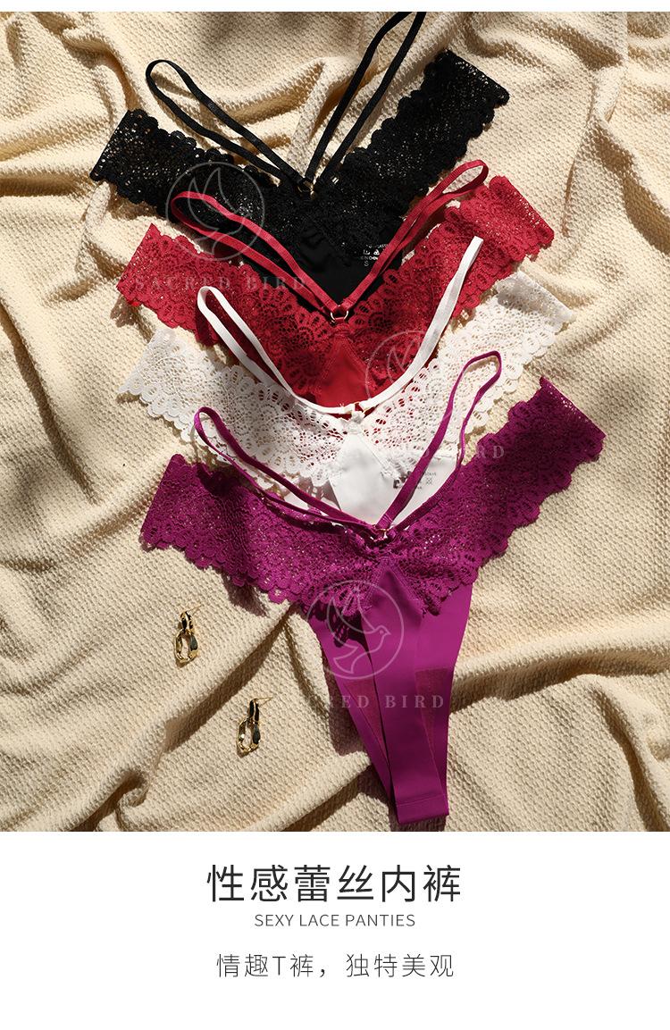 Encaje Francés Empalmado Sin Costuras Seda de Hielo de Secado Rápido Ropa Interior Deportiva Exquisitos Tirantes Finos Sexy Tanga de Talla Grande para Mujer