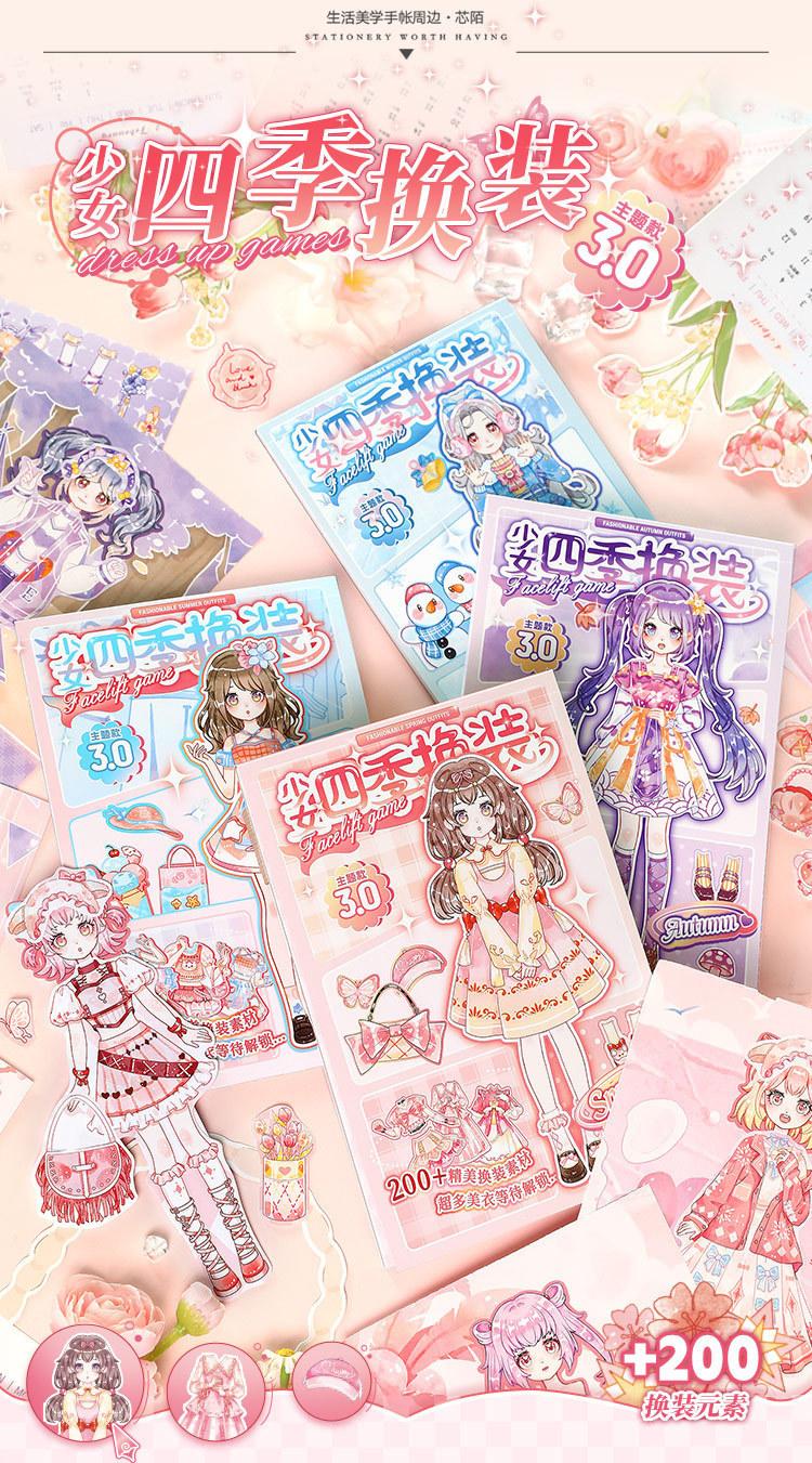 Xinmo niña Cuatro Estaciones juego de vestir libro de pegatinas Nuevo Lindo princesa maquillaje pegatinas para cambiar niños pegatinas de niña