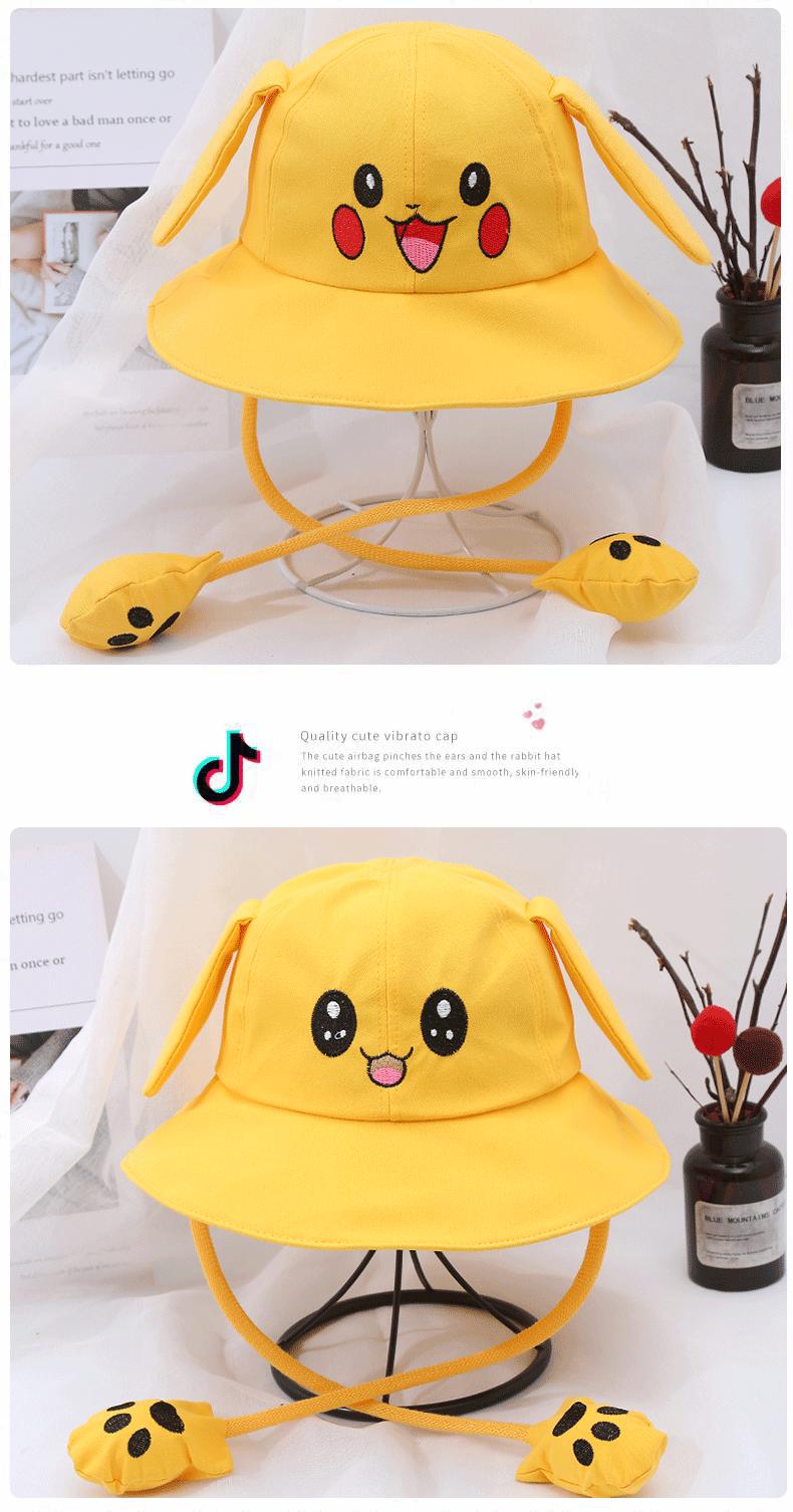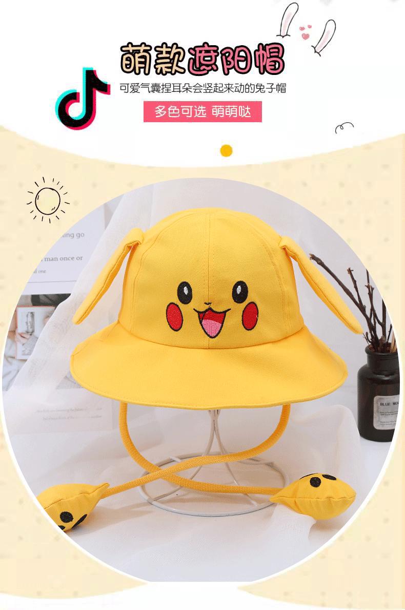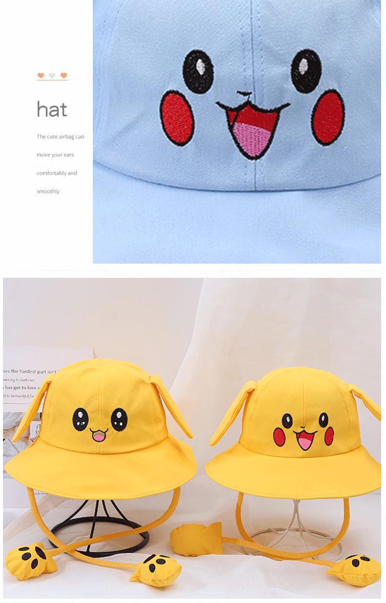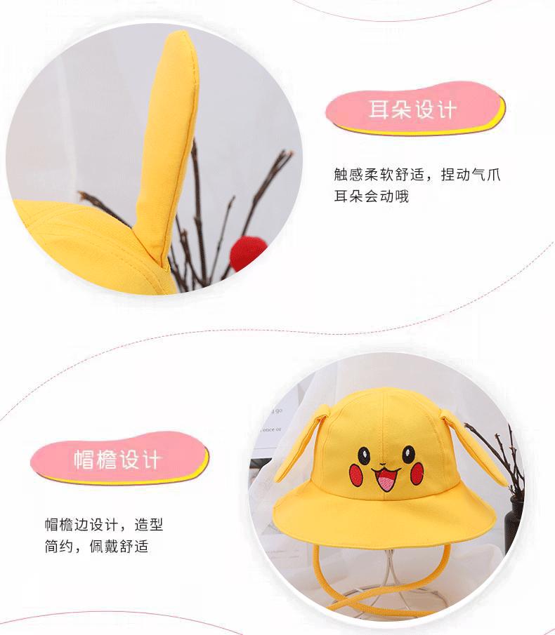 Sombrero de pescador con orejas de algodón para niños, sombrilla móvil, diseño de Pikachu, para padres e hijos, ideal como atracción turística.