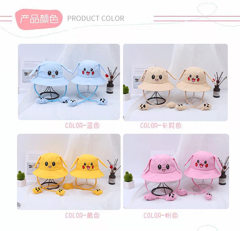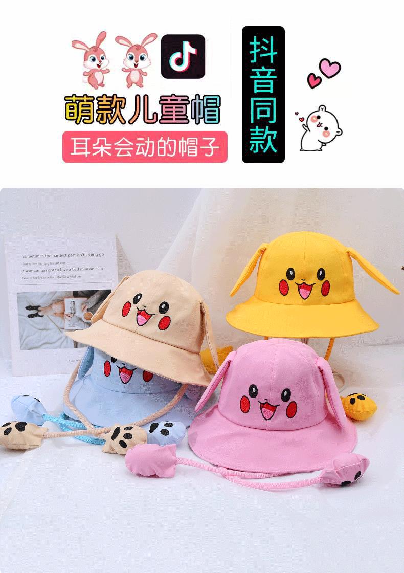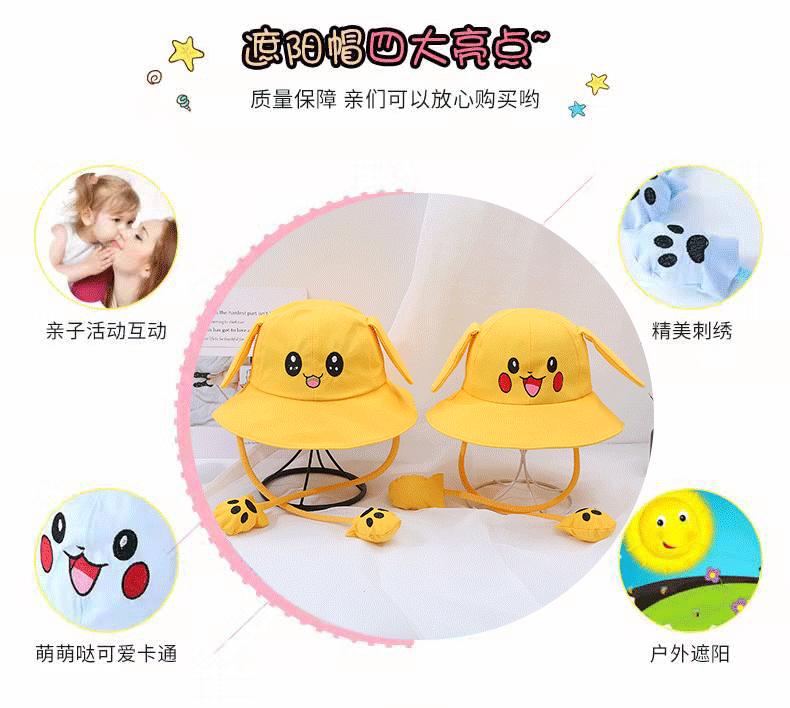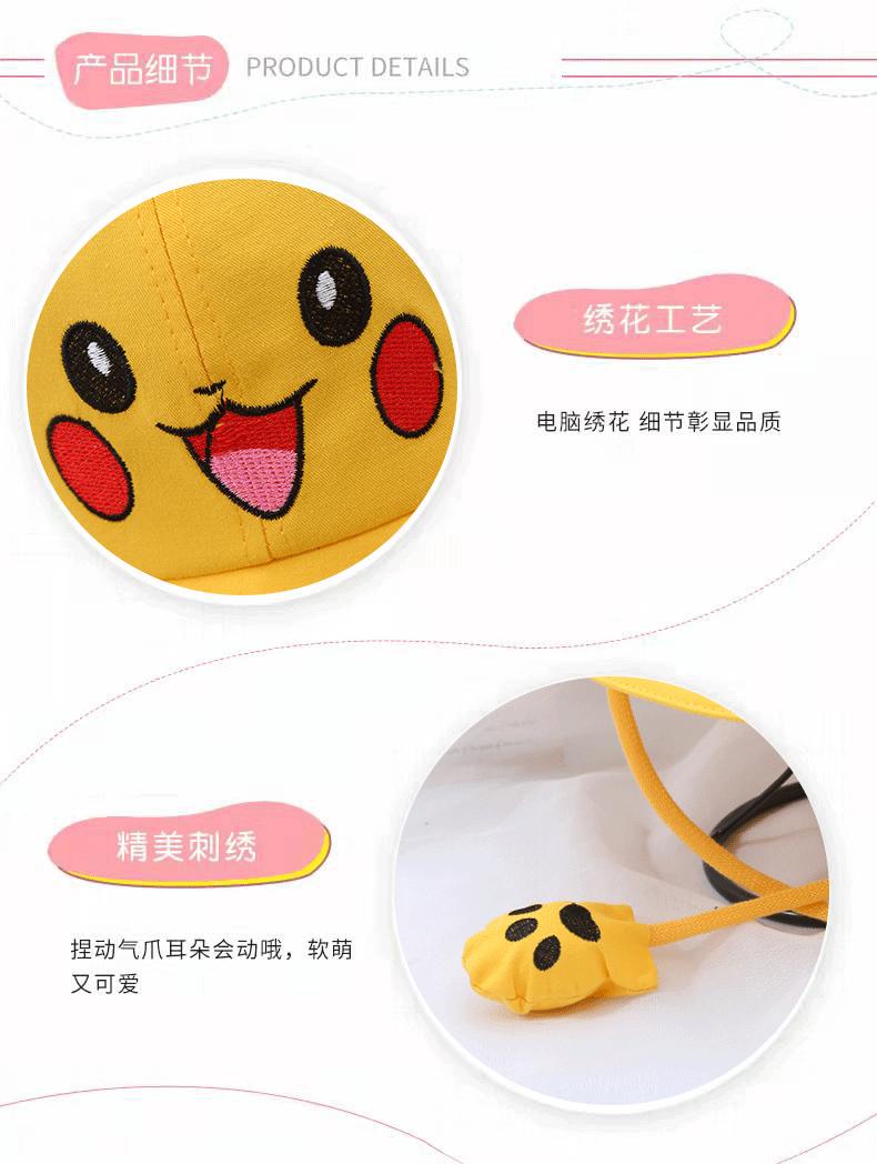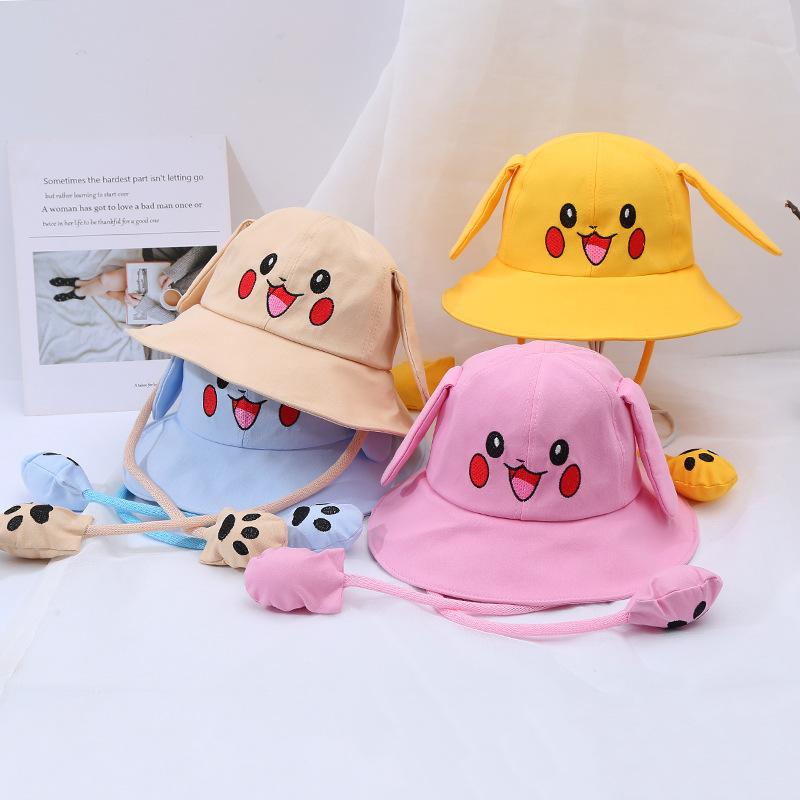 Sombrero de pescador con orejas de algodón para niños, sombrilla móvil, diseño de Pikachu, para padres e hijos, ideal como atracción turística.
