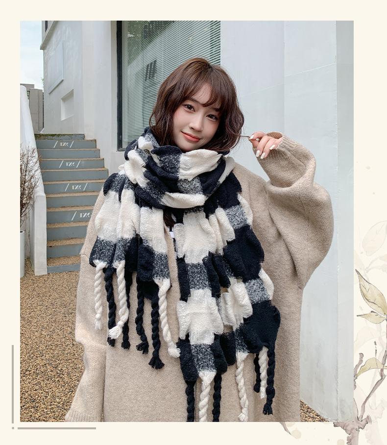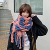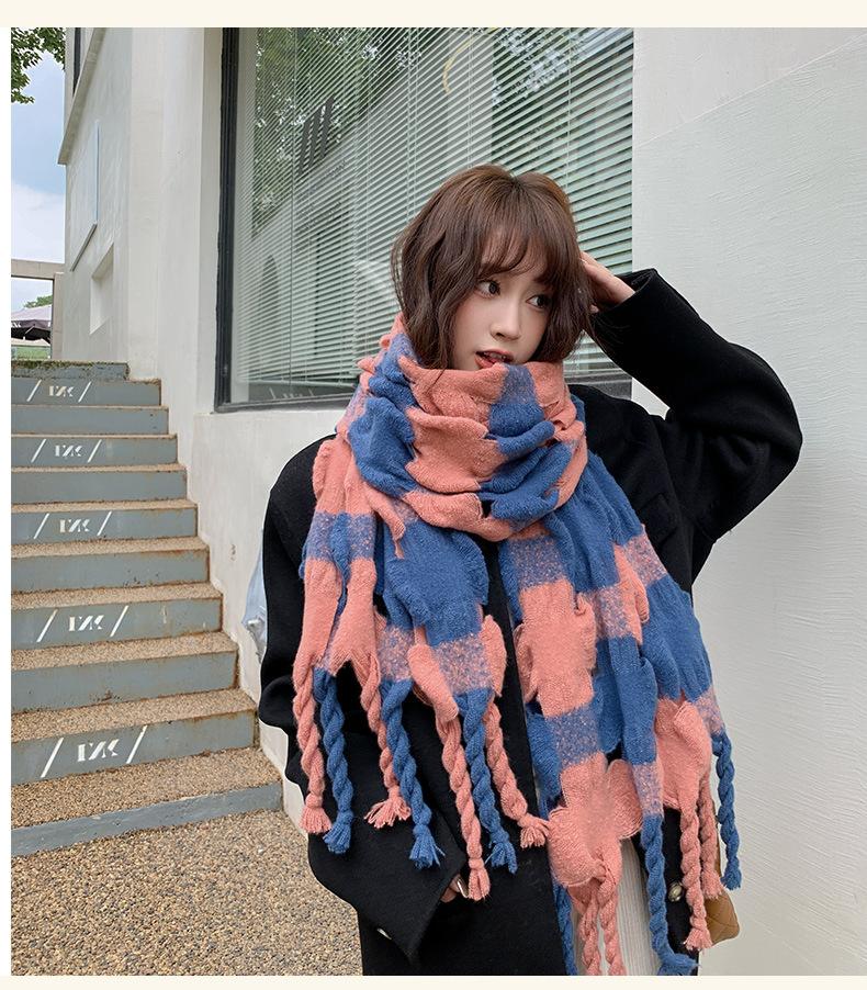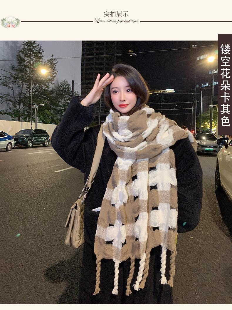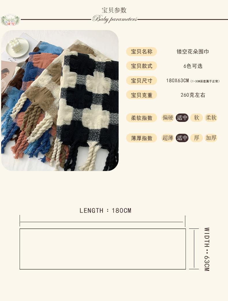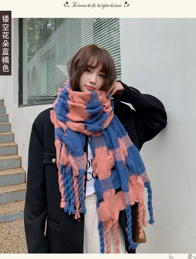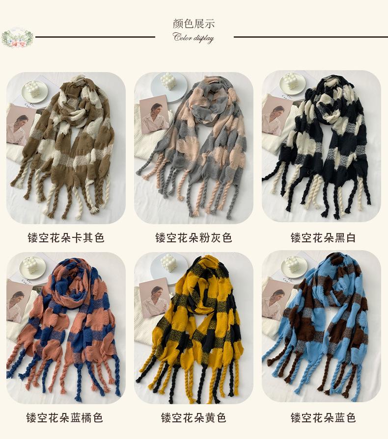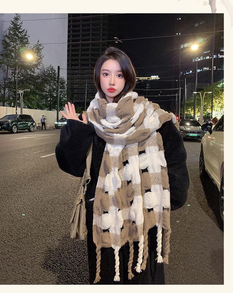 Bufanda de diseño nicho a cuadros huecos estilo coreano ins chal de borlas largas cálida bufanda de estudiante al por mayor