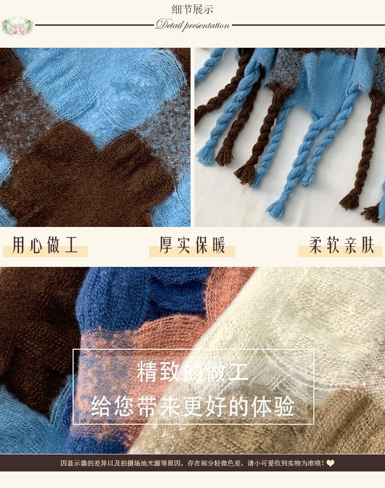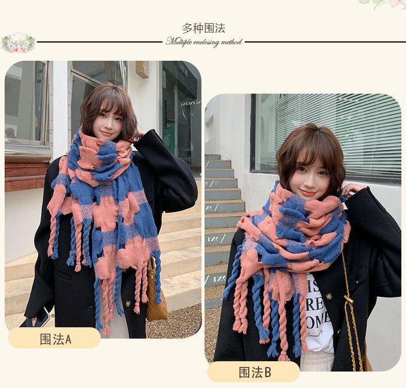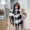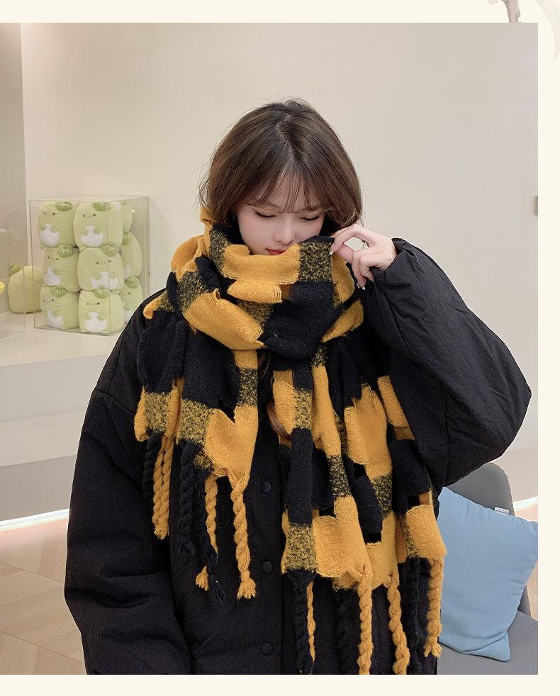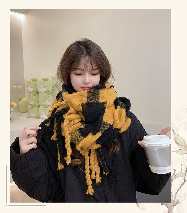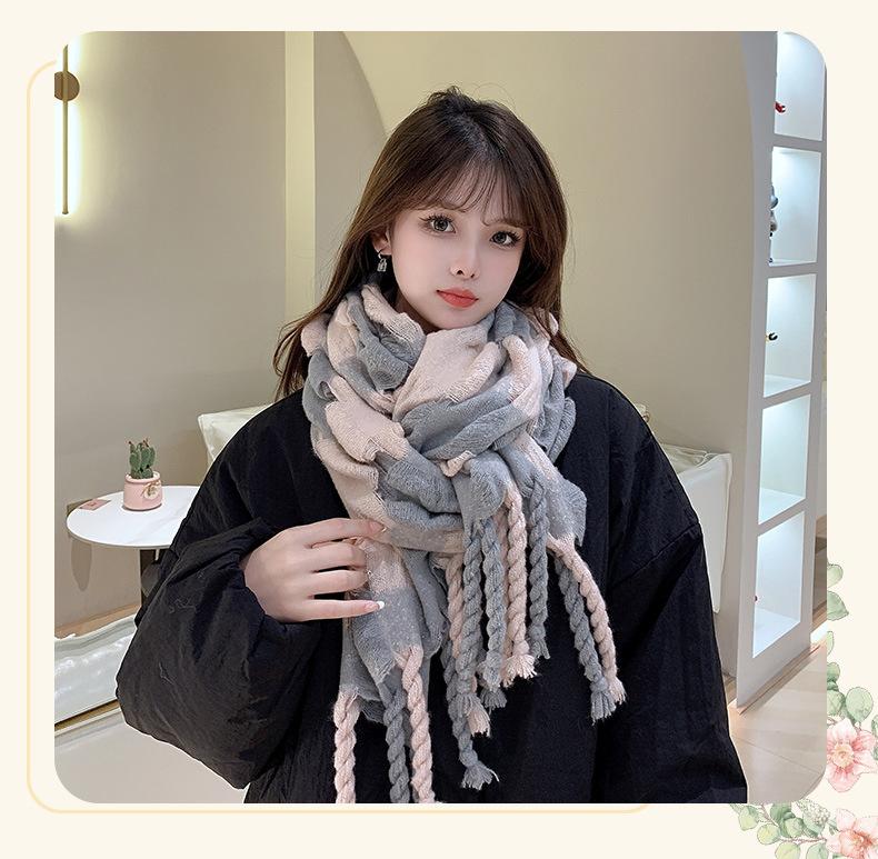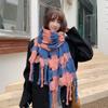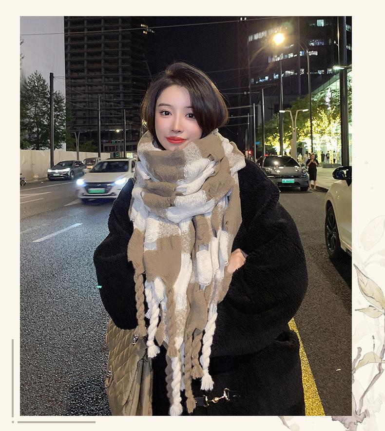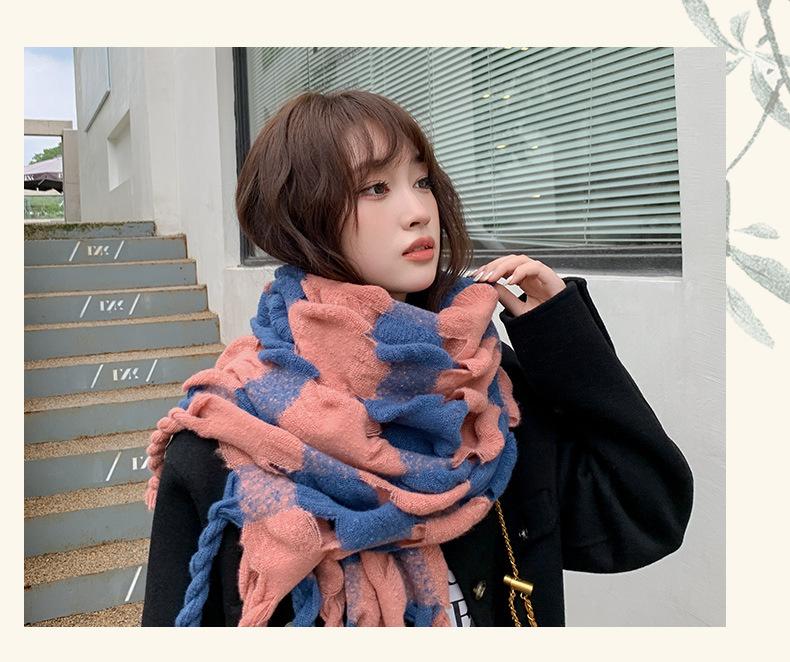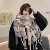 Bufanda de diseño nicho a cuadros huecos estilo coreano ins chal de borlas largas cálida bufanda de estudiante al por mayor