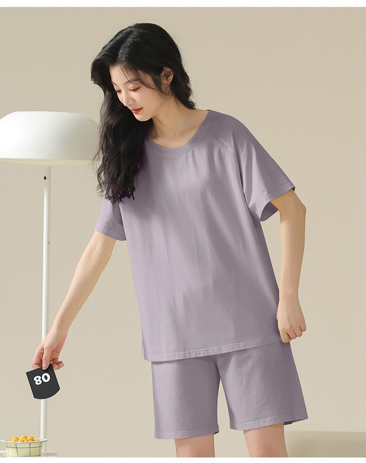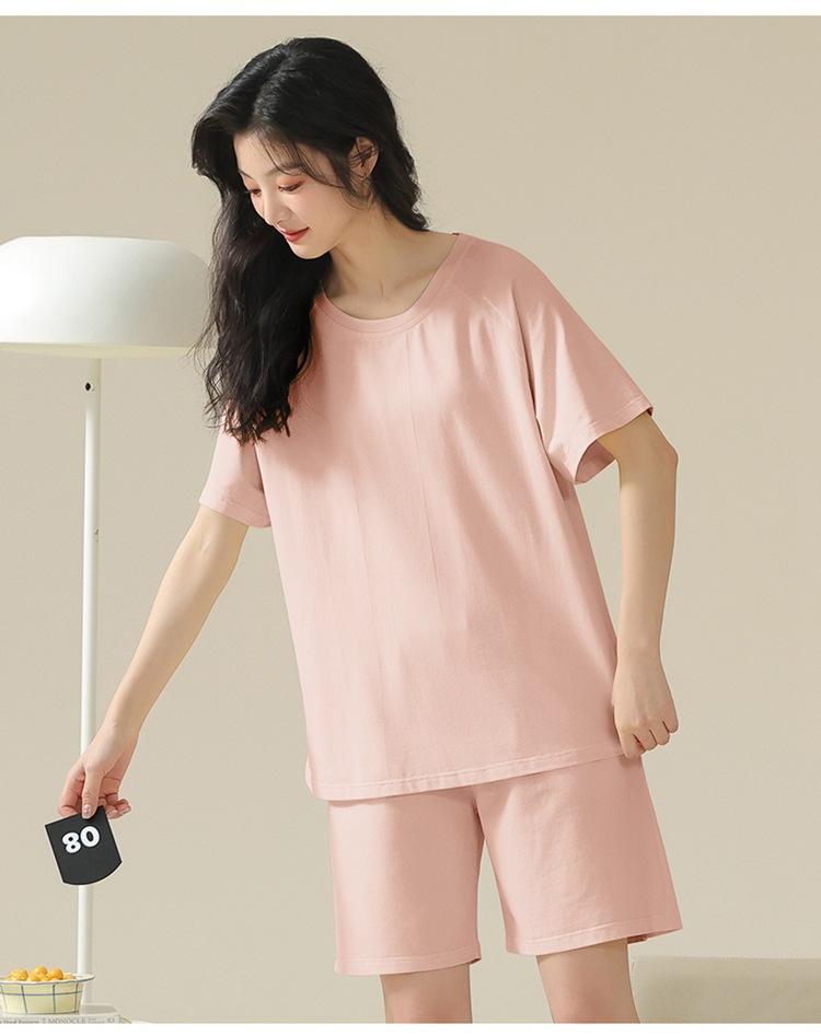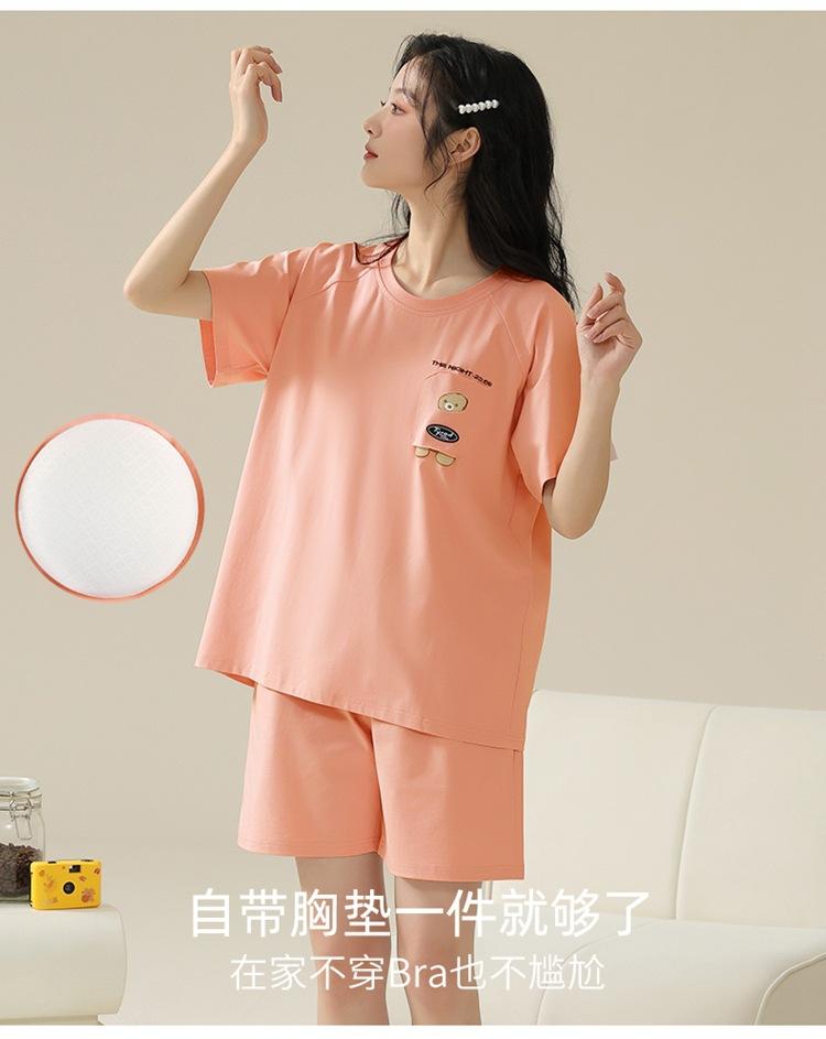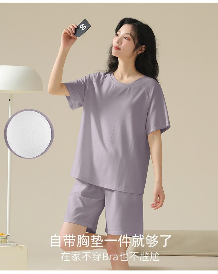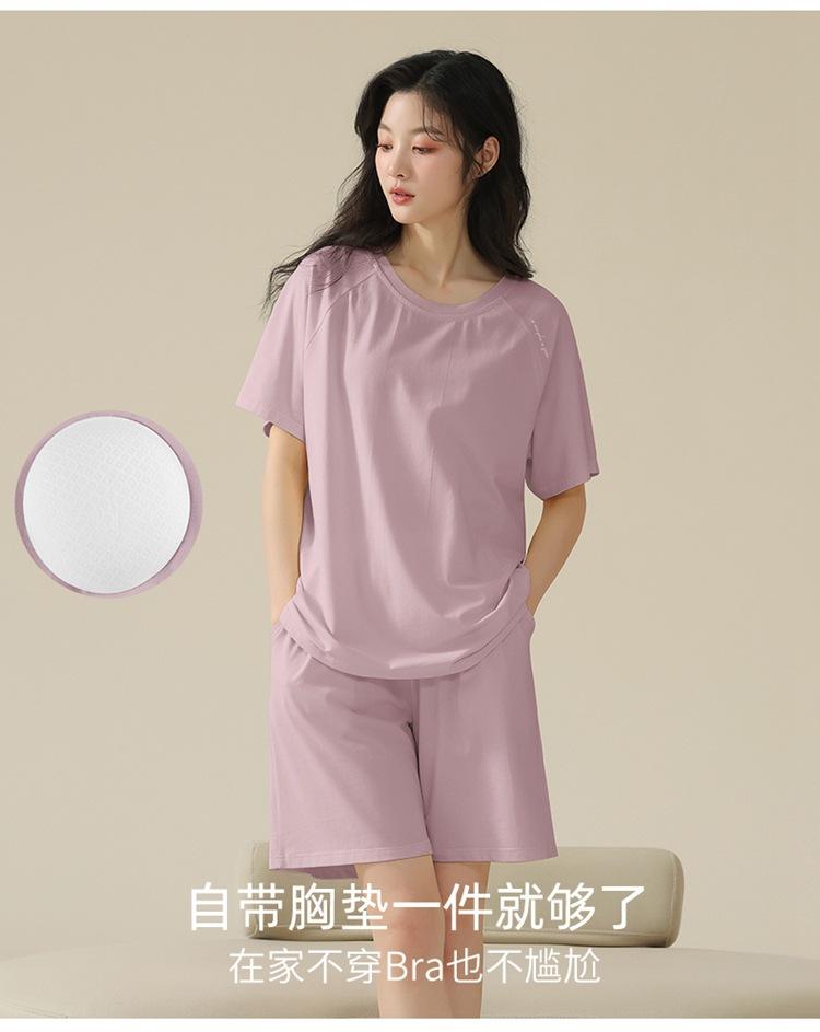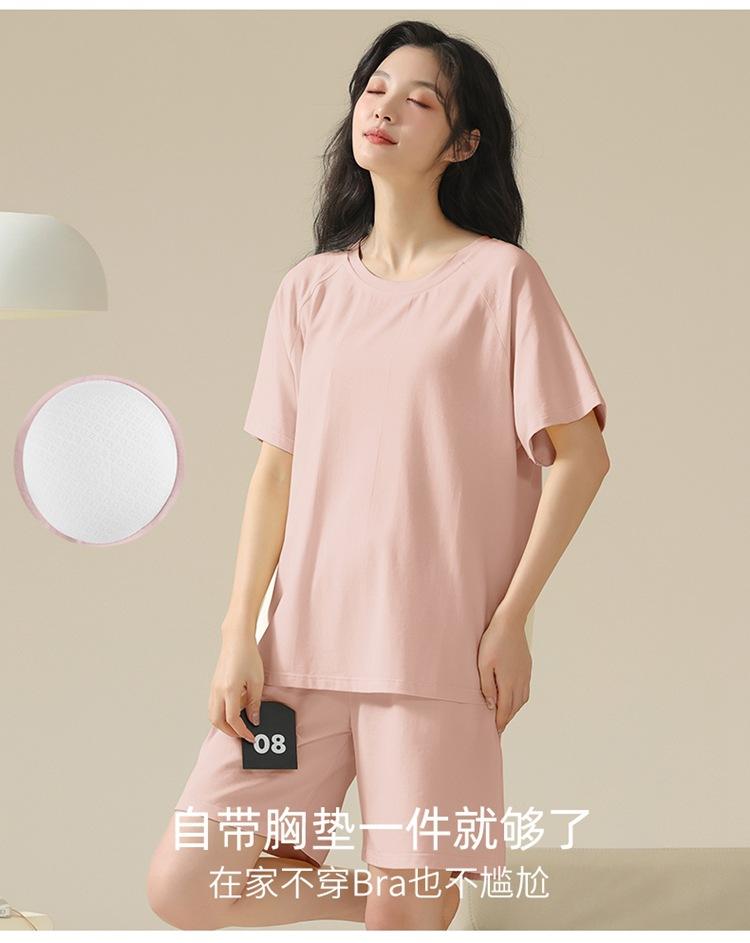 Pijama de verano con almohadillas para el pecho con sensación de hielo para mujer, pantalones cortos de manga corta, sencillos, sueltos, suaves, absorbentes de humedad, transpirables, ropa de casa para mujer.