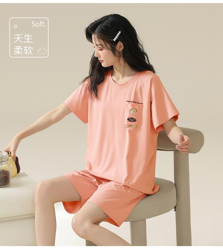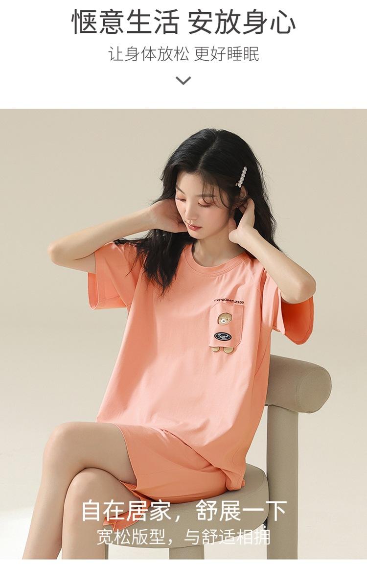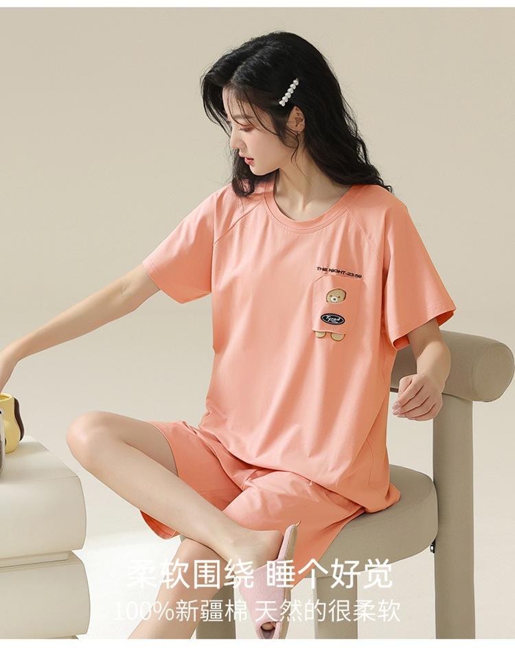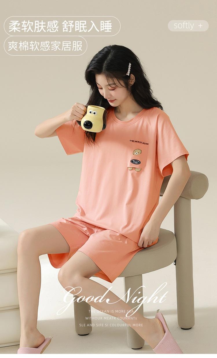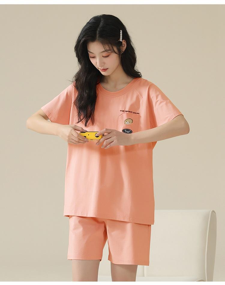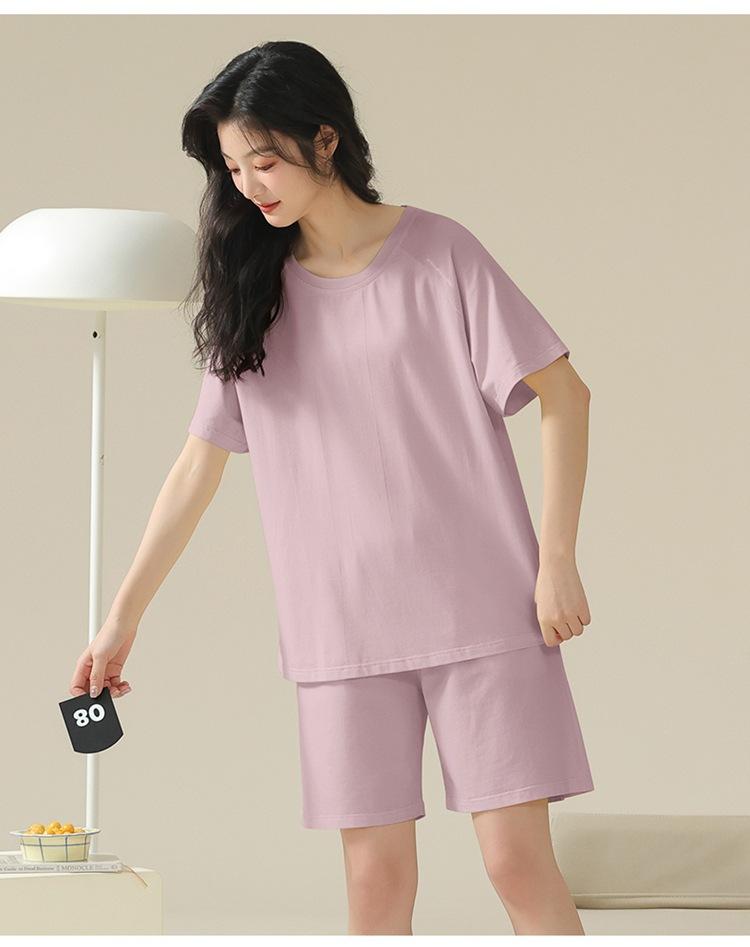 Pijama de verano con almohadillas para el pecho con sensación de hielo para mujer, pantalones cortos de manga corta, sencillos, sueltos, suaves, absorbentes de humedad, transpirables, ropa de casa para mujer.