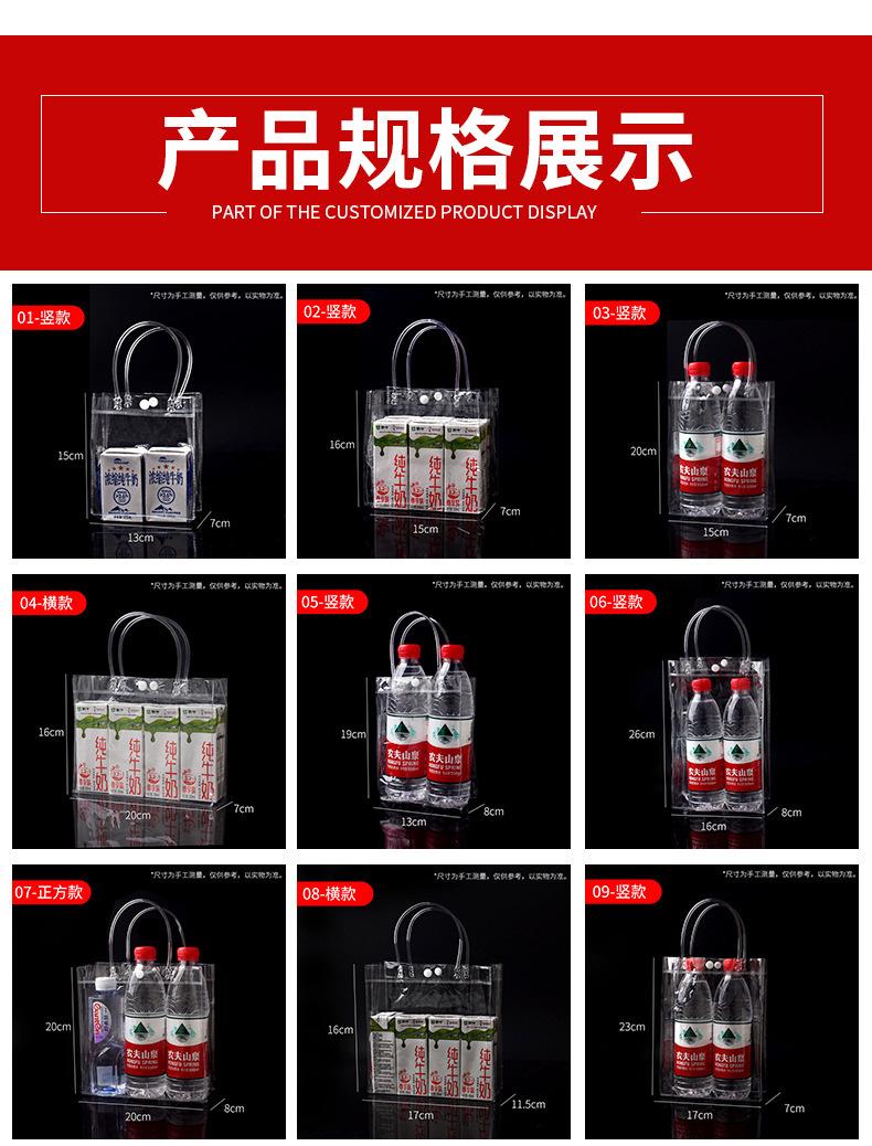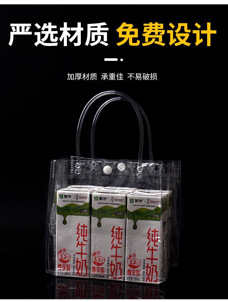 Bolso de mano de PVC transparente al por mayor, bolsa de regalo de plástico transparente, bolsa de embalaje para llevar té con leche, se puede imprimir el logotipo