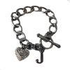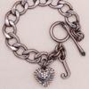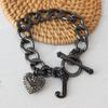 Pulsera básica de amor de personalidad de estilo retro europeo y americano hip hop de bronce con diamantes completos colgante en forma de corazón de durazno J collar