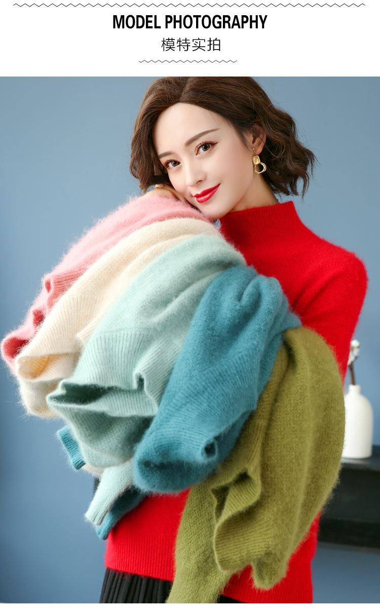 Suéter de visón ajustado para otoño e invierno de 2020, suéter de lana grueso para mujer, cuello alto medio, base de punto ajustada que combina con todo.