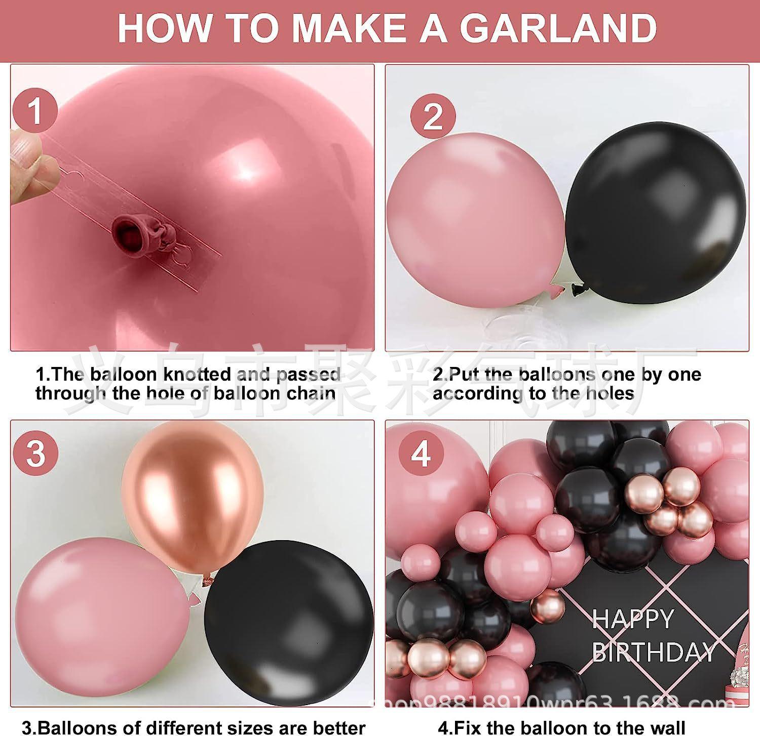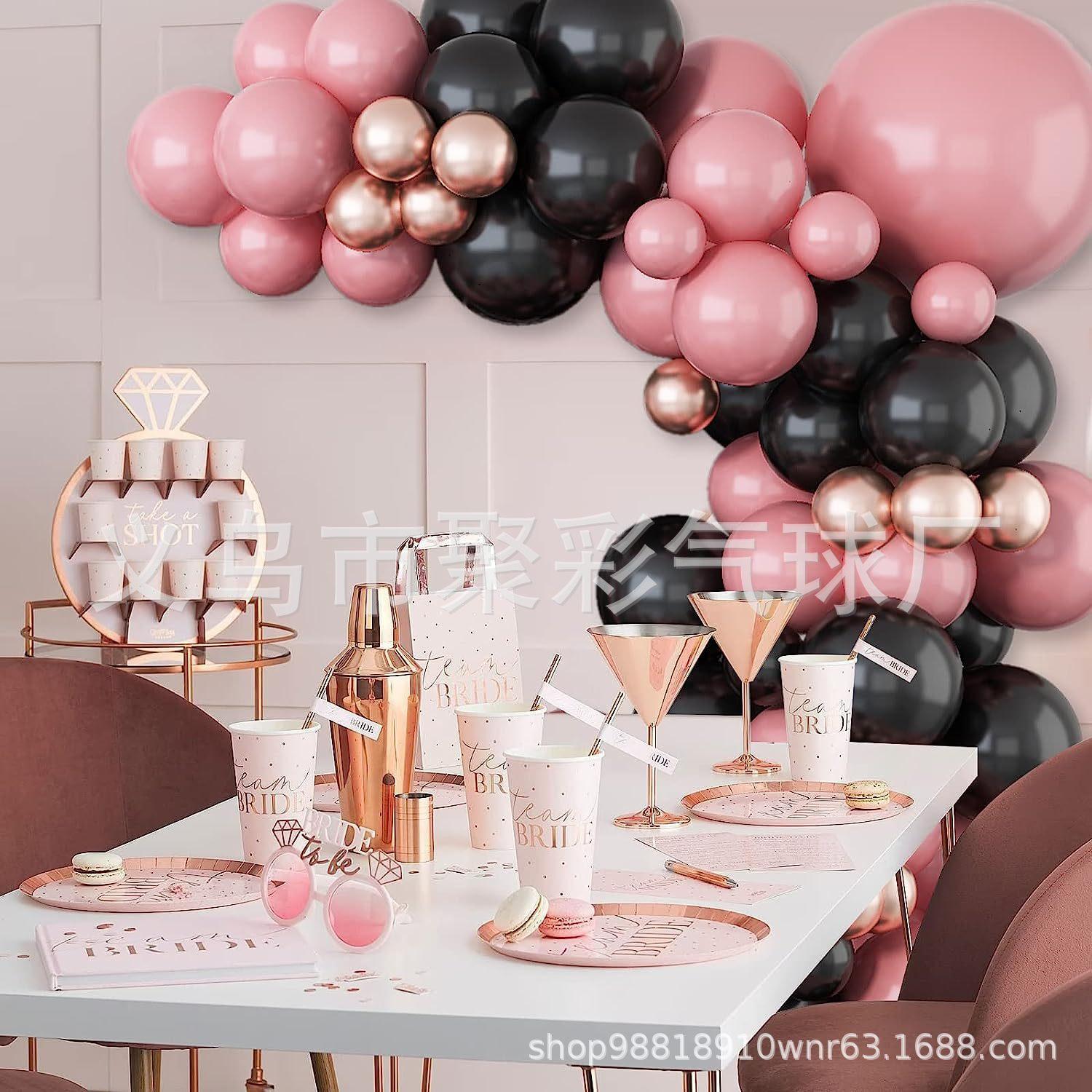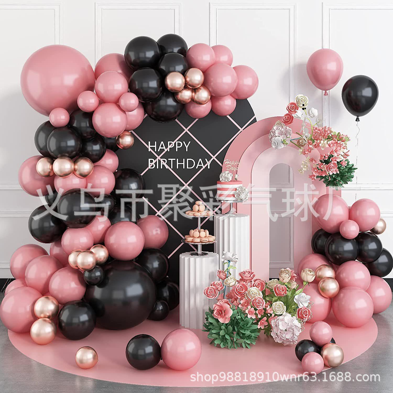 Set de Globos Rosa Negro Transfronterizo Fiesta de Cumpleaños Diseño de Escena de Boda Lote de Globos para Fondo de Fiesta