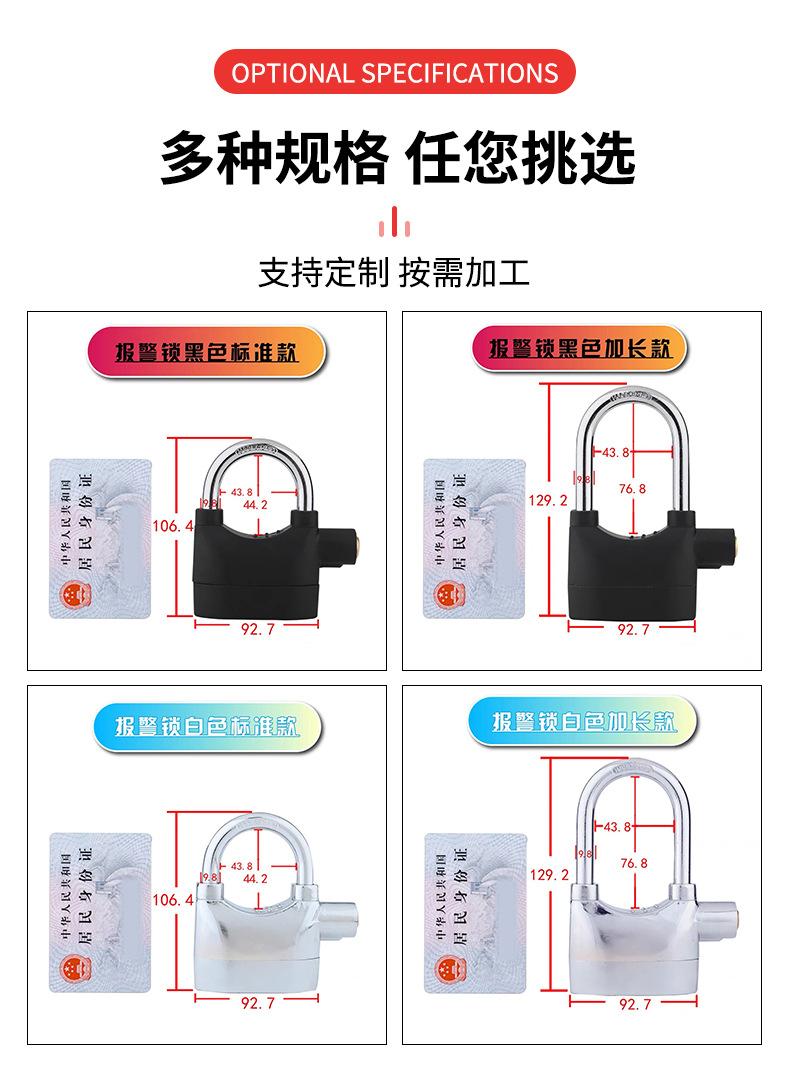110 Candado de Alarma Candado Candado para Bicicleta Eléctrica Puerta Exterior Aleación de Aluminio Candado Antirrobo Mejora
