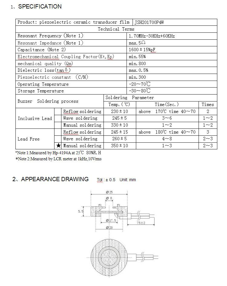 Shenzhen Jishenghui Electronics Co., Ltd. está ubicada en el distrito de Bao'an, ciudad de Shenzhen, provincia de Guangdong. La empresa es un fabricante profesional que desarrolla, produce y vende zumbadores/dispositivos cerámicos piezoeléctricos, atomización de película de acero de varias especificaciones y modelos, películas de belleza, películas de limpieza ultrasónica, transductores piezoeléctricos, transductores ultrasónicos y sensores ultrasónicos, y zumbadores electromagnéticos. La fábrica cuenta con muchos ingenieros sénior en los campos piezoeléctrico y electroacústico y más de 100 empleados, y está decidida a proporcionar a los clientes soluciones técnicas profesionales para la tecnología piezoeléctrica y electroacústica. Varios productos se utilizan ampliamente en relojes/calculadoras/lavadoras/hornos microondas/cámaras digitales/alarmas de paneles de control de varios electrodomésticos/varias alarmas, humidificadores de aire, atomizadores de aceites esenciales, instrumentos de belleza ultrasónicos/raspadores ultrasónicos para la piel, limpieza ultrasónica, soldadura ultrasónica, limpieza dental ultrasónica, detección ultrasónica, telémetros ultrasónicos, repelentes/dispositivos de entrenamiento ultrasónicos para perros, repelentes ultrasónicos de mosquitos/ratones, radares ultrasónicos de marcha atrás, bloqueos antirrobo para automóviles, detectores de vibración para cajeros automáticos, bombas piezoeléctricas y otros campos.