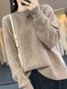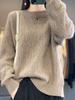 Suéter de lana gruesa para mujer, suéter de cachemira suelto de punto de lana pura, suéter corto de otoño e invierno con parte inferior cruzada, venta al por mayor