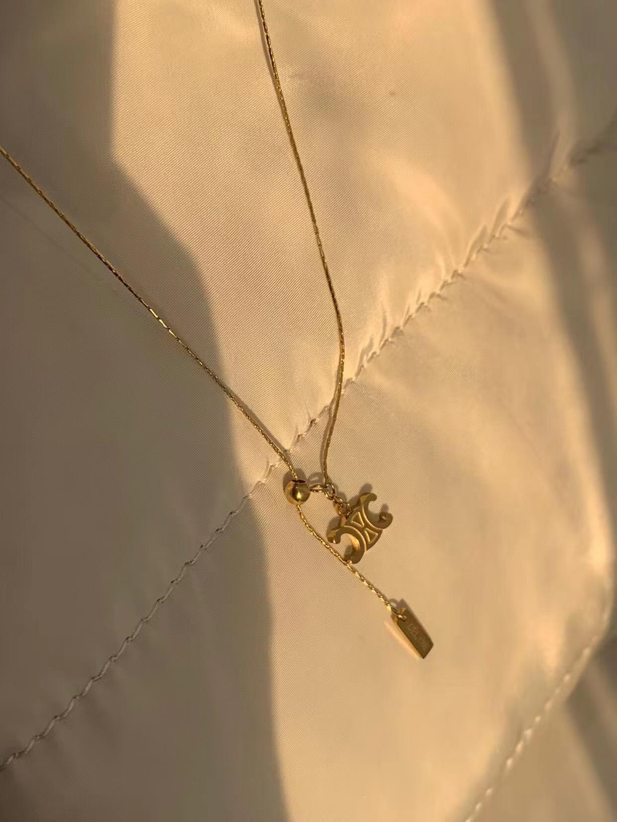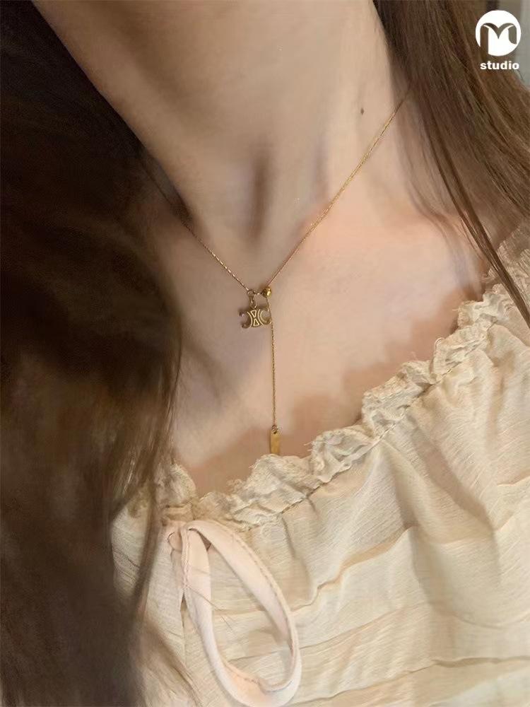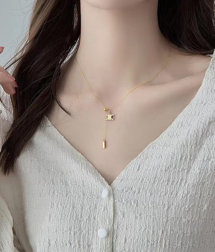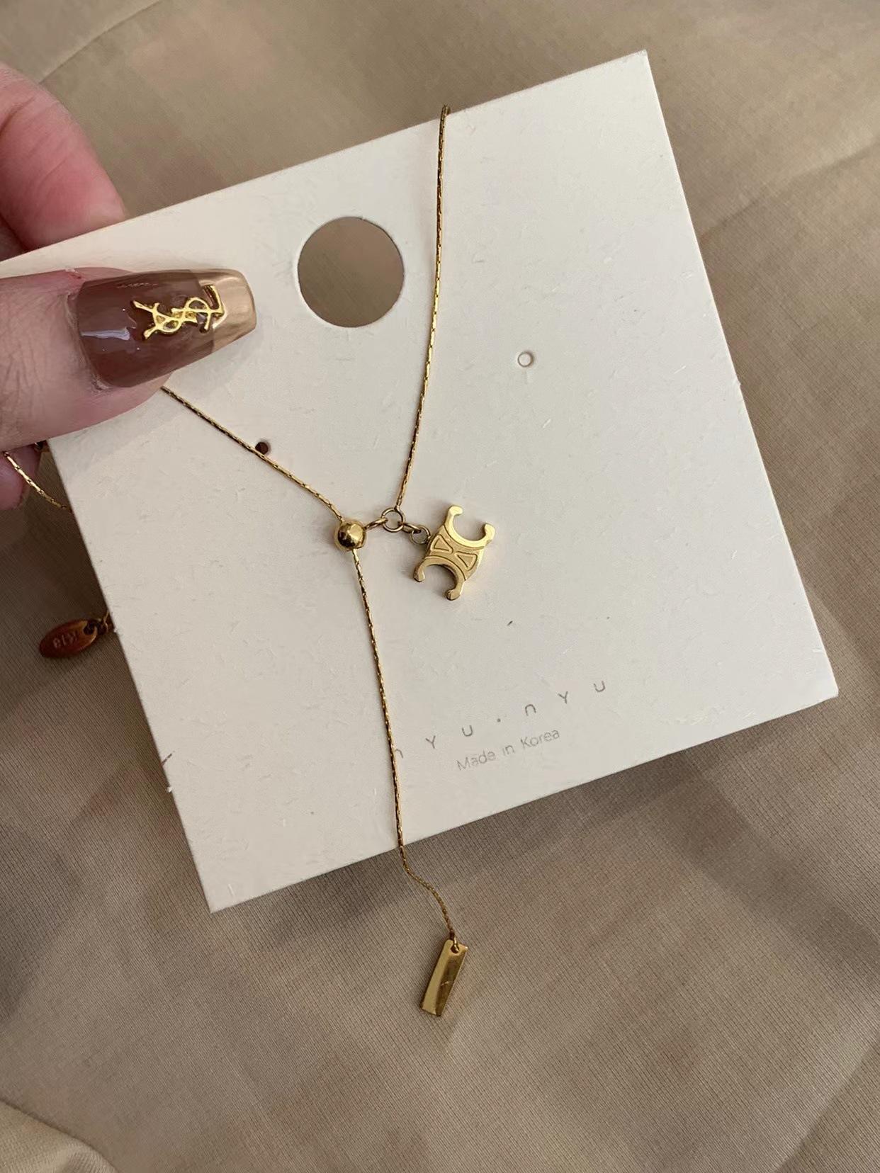 Collar de Acero de Titanio Chapado en Oro con Colgante Extraíble con Patrón Nicho de Lujo Ligero Arco del Triunfo Cadena para Clavícula de Alta Gama Trendy que No se Desvanece