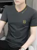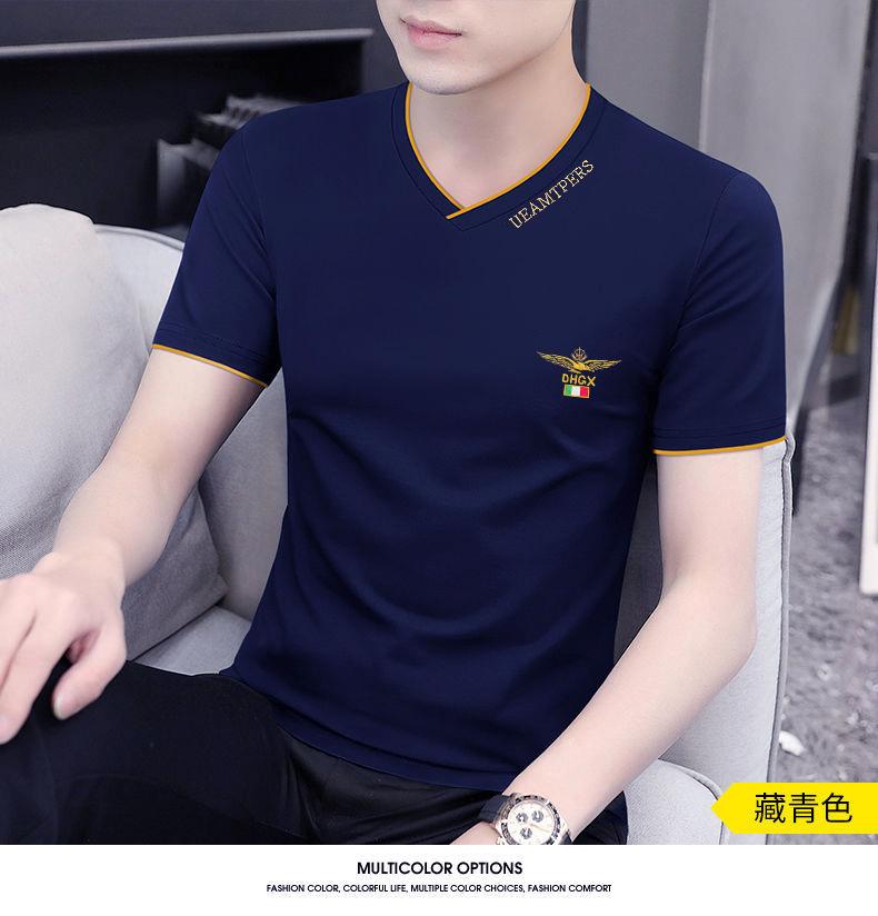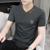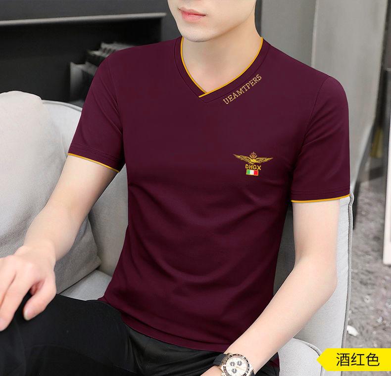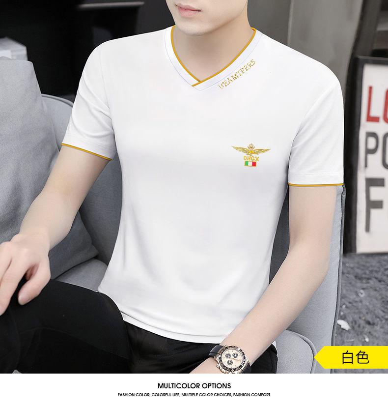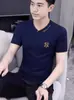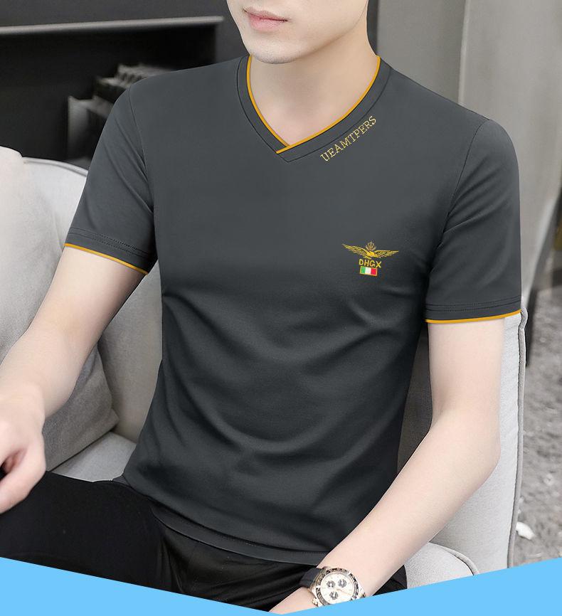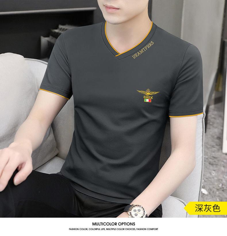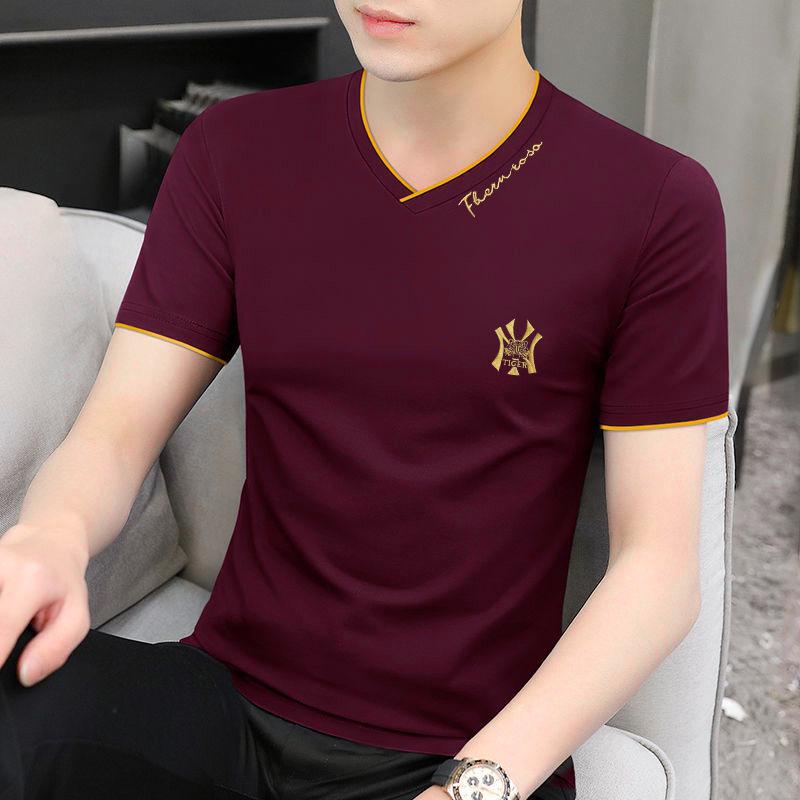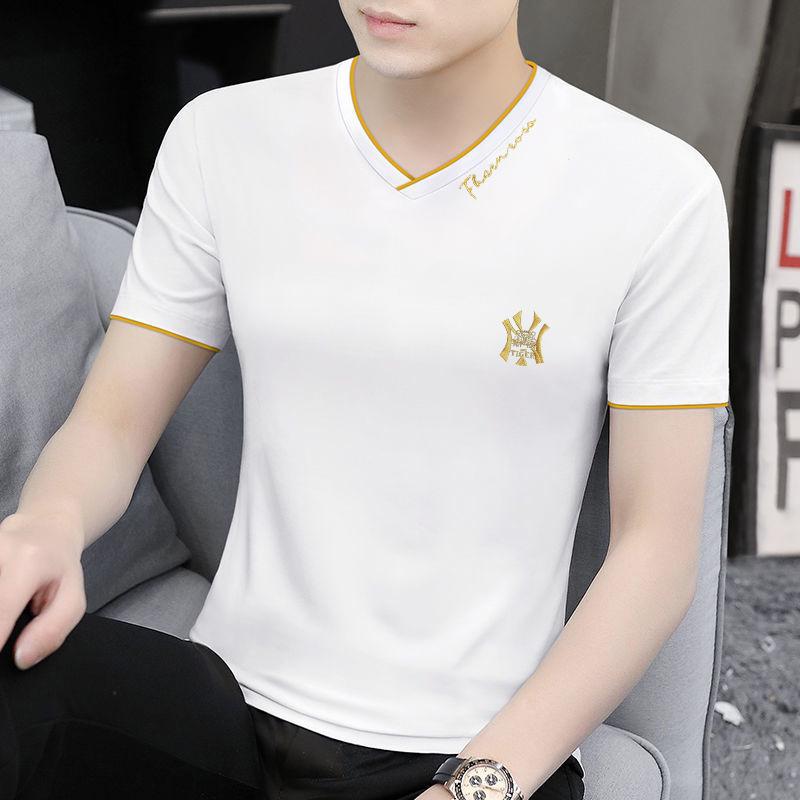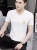 Camiseta de verano de manga corta con cuello en V para hombre, ropa moderna, camiseta informal ajustada, nueva de media manga para hombre