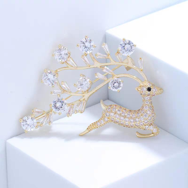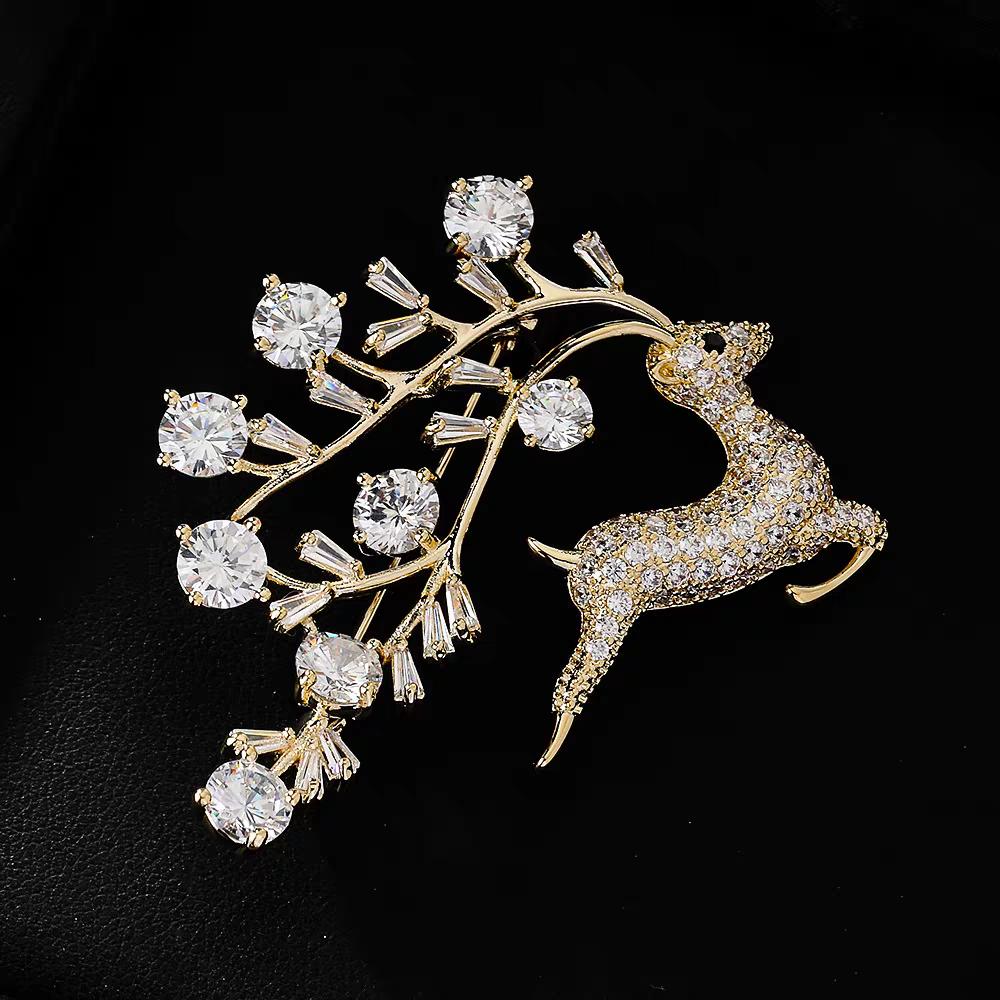 Broche delicado de alce de circonita microincrustada, joyería de regalo de moda para mujer, temperamento versátil, accesorios de ramillete, pin simple