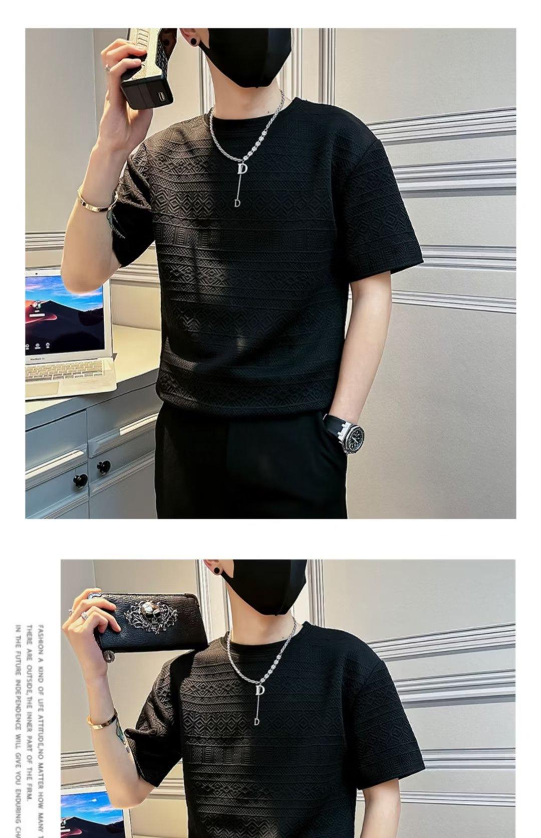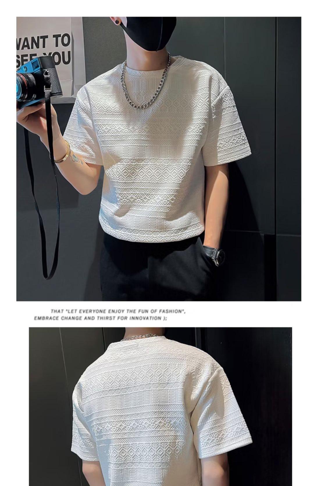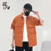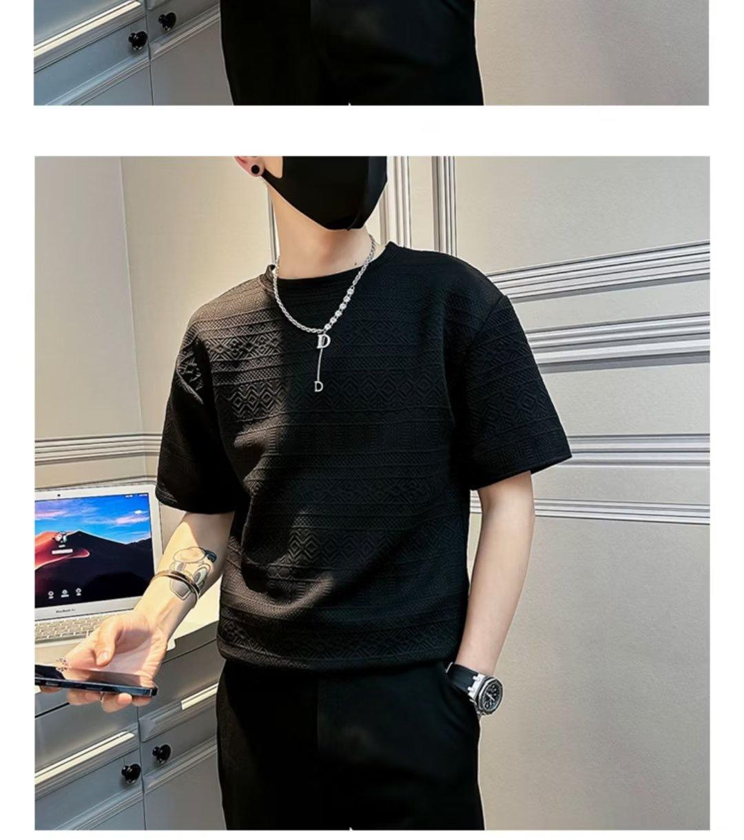 Camiseta de manga corta con cuello redondo estilo japonés para hombre, marca de moda, creativa, de media manga, informal, juvenil, de color sólido.
