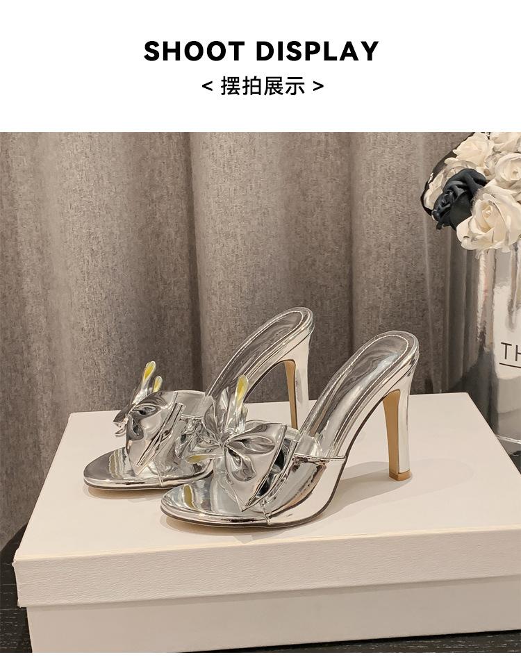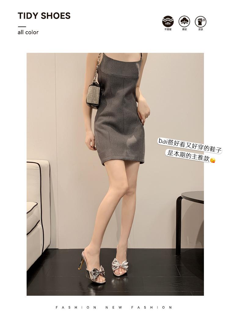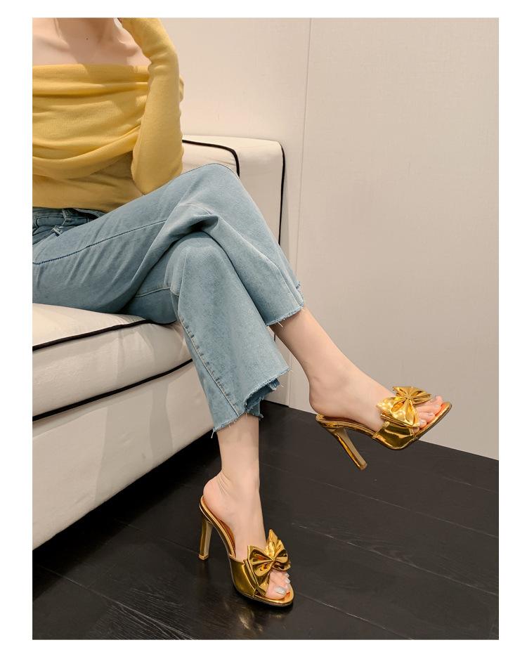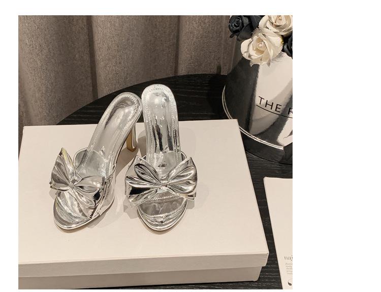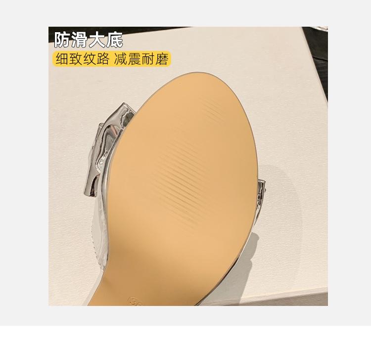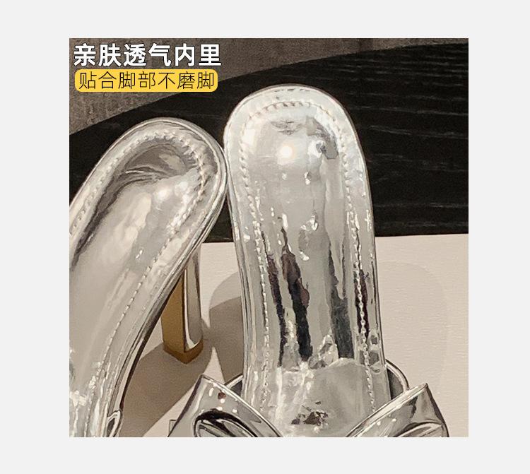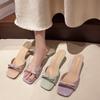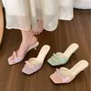 Sandalias y pantuflas de diamantes pequeños para mujer, verano 2024, nuevo estilo coreano, estilo hada, con lazo dulce, pantuflas de tacón alto y tacón fino.