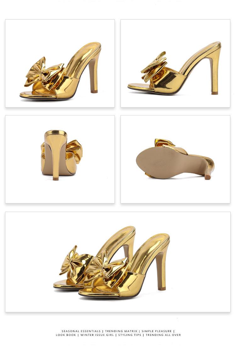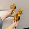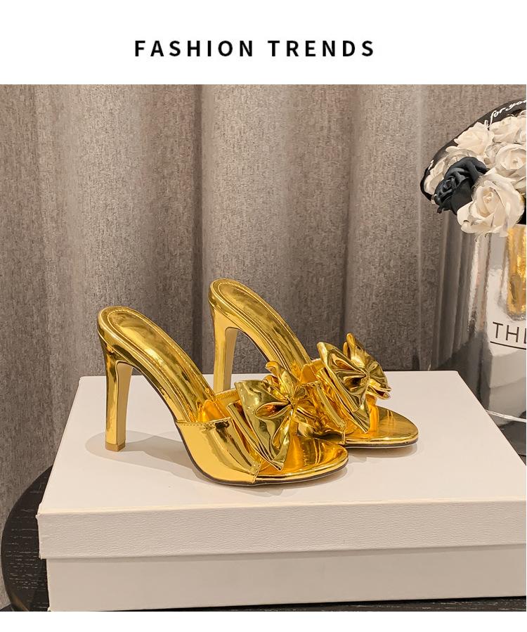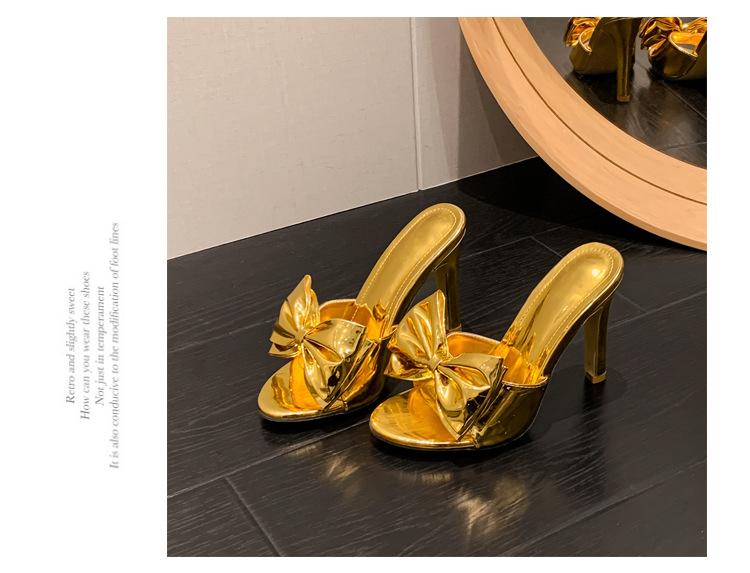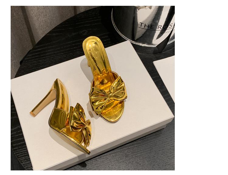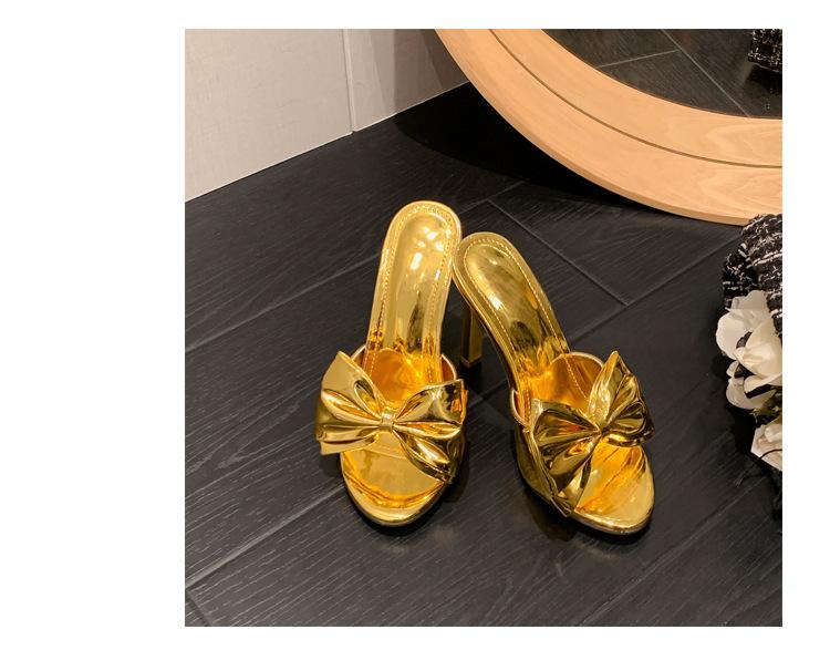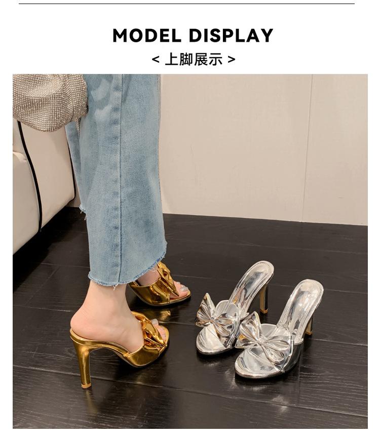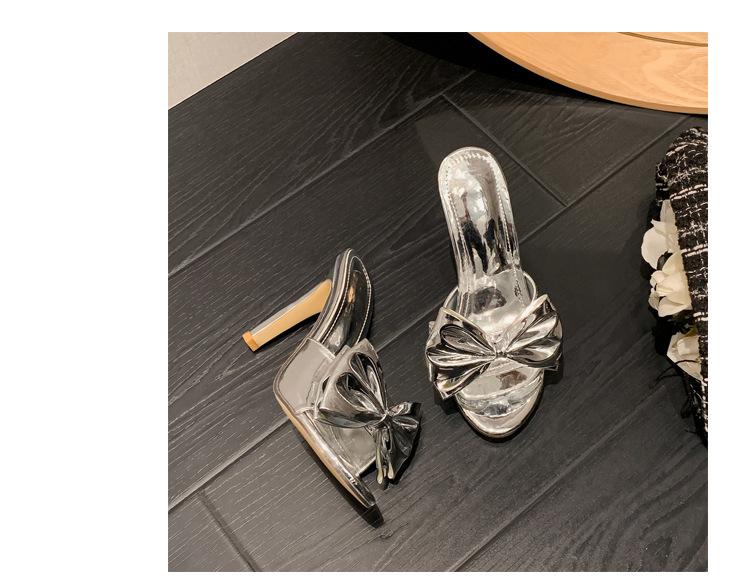Sandalias y pantuflas de diamantes pequeños para mujer, verano 2024, nuevo estilo coreano, estilo hada, con lazo dulce, pantuflas de tacón alto y tacón fino.