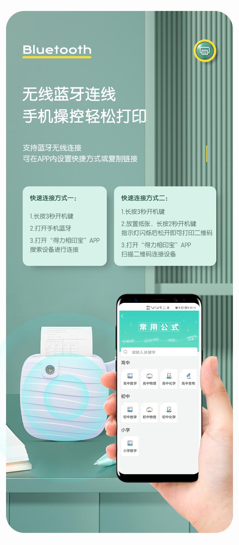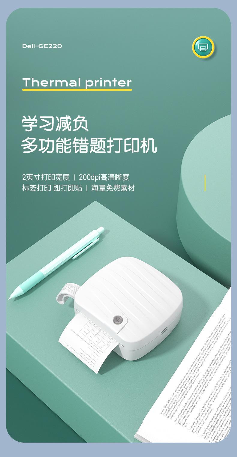 Impresora Deli Ge220 con Corrección de Errores Mini Impresora Térmica Portátil para Estudiantes Impresora Fotográfica de Bolsillo Bluetooth