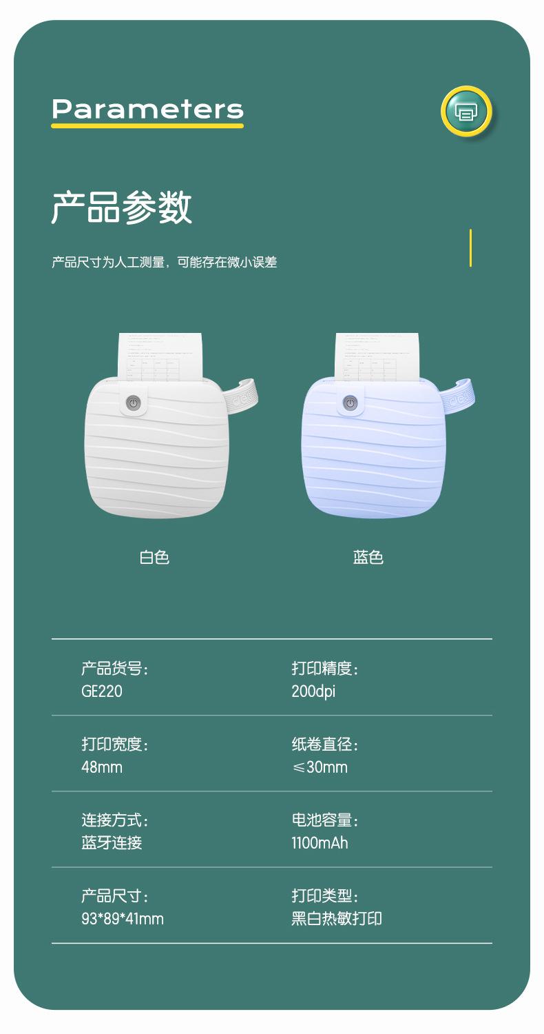 [Blue] GE220 Wrong Question Printer/Send 3 Rolls of Adhesive 3 Rolls of Printing Paper