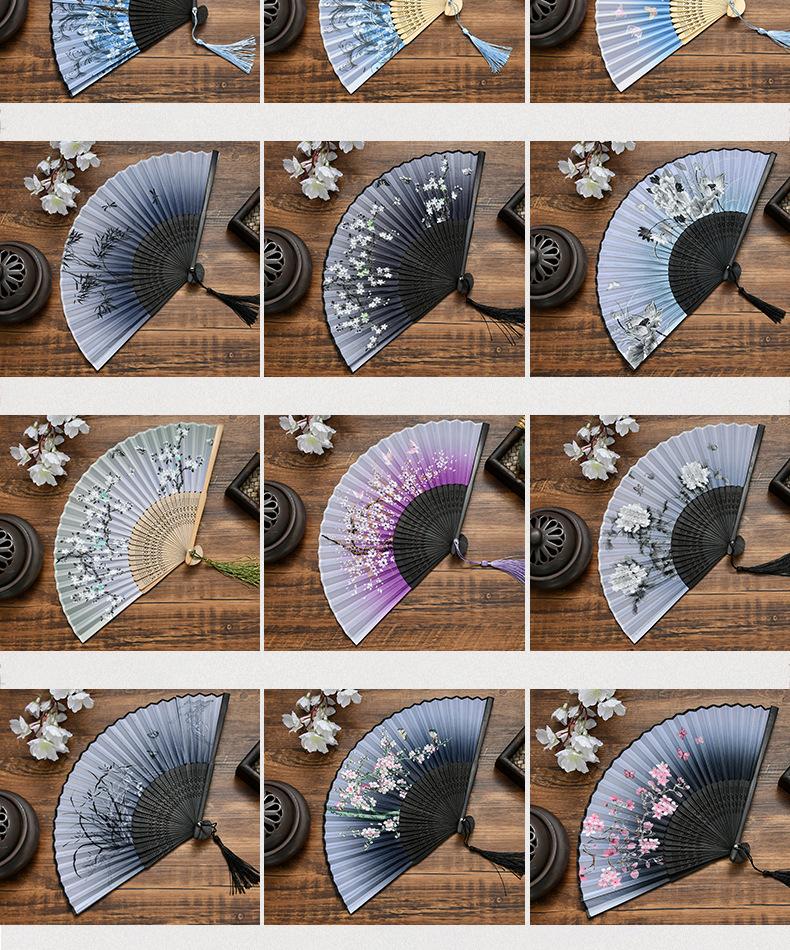 Abanico plegable de fábrica al por mayor, estilo chino, para mujer, antiguo, clásico, de verano, para baile, Hanfu, pequeño abanico plegable de bambú