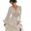 Vestido de novia para dama de honor, camisón de plumas para mujer, maquillaje de boda, kimono de boda para dama de honor, bata larga de satén.