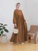 2024 nuevo vestido transfronterizo para mujer musulmana, moda casual, manga abullonada, simple, holgado, color sólido