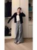 Estilo Ins Caliente 2024 Ropa de Mujer Transfronteriza Europea y Americana Cómoda Casual Cubre Caderas Adelgazante Look Traje Holgado Pantalones Casuales de Punto