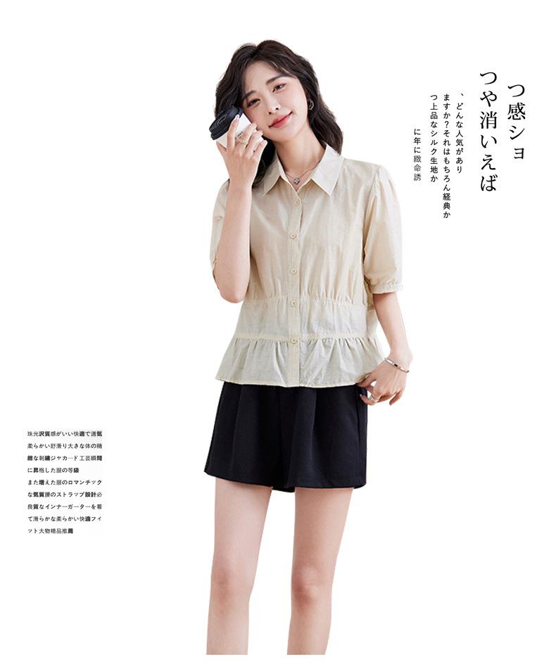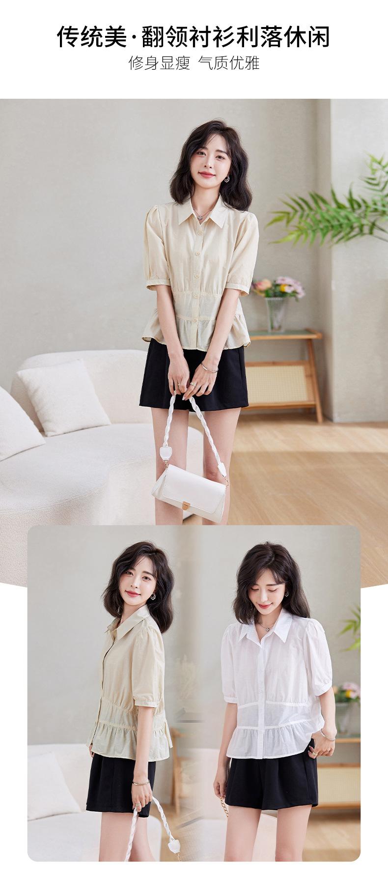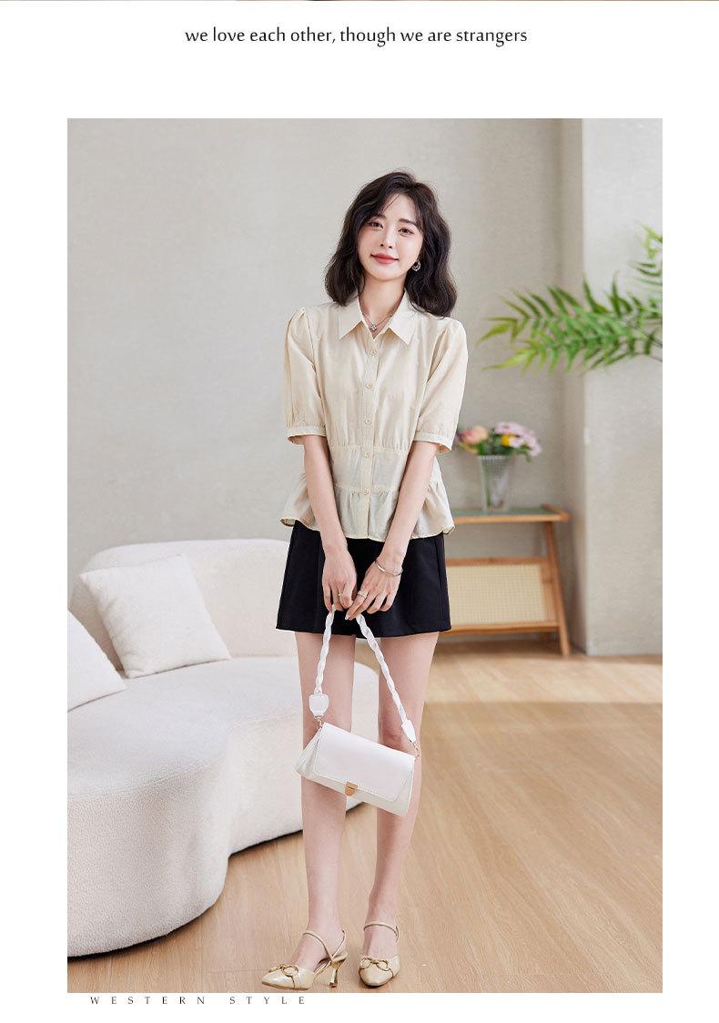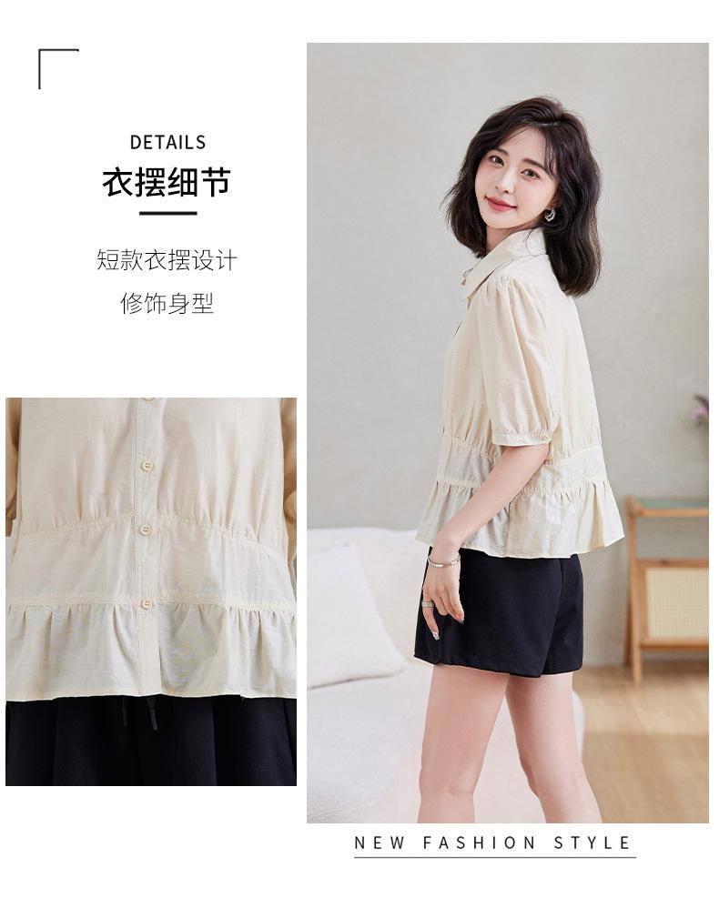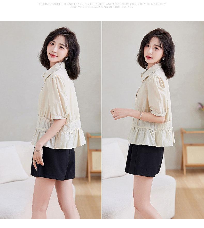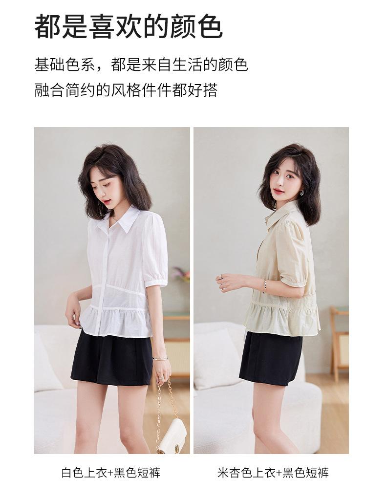 Conjunto de Moda de Camisa Retro Francesa y Shorts para Mujer Diseño de Verano 2024 Plisado Elegante Ajustado de Dos Piezas