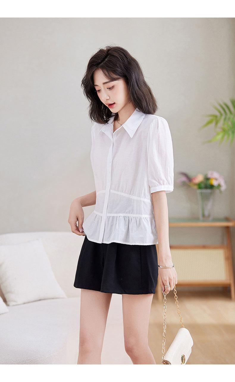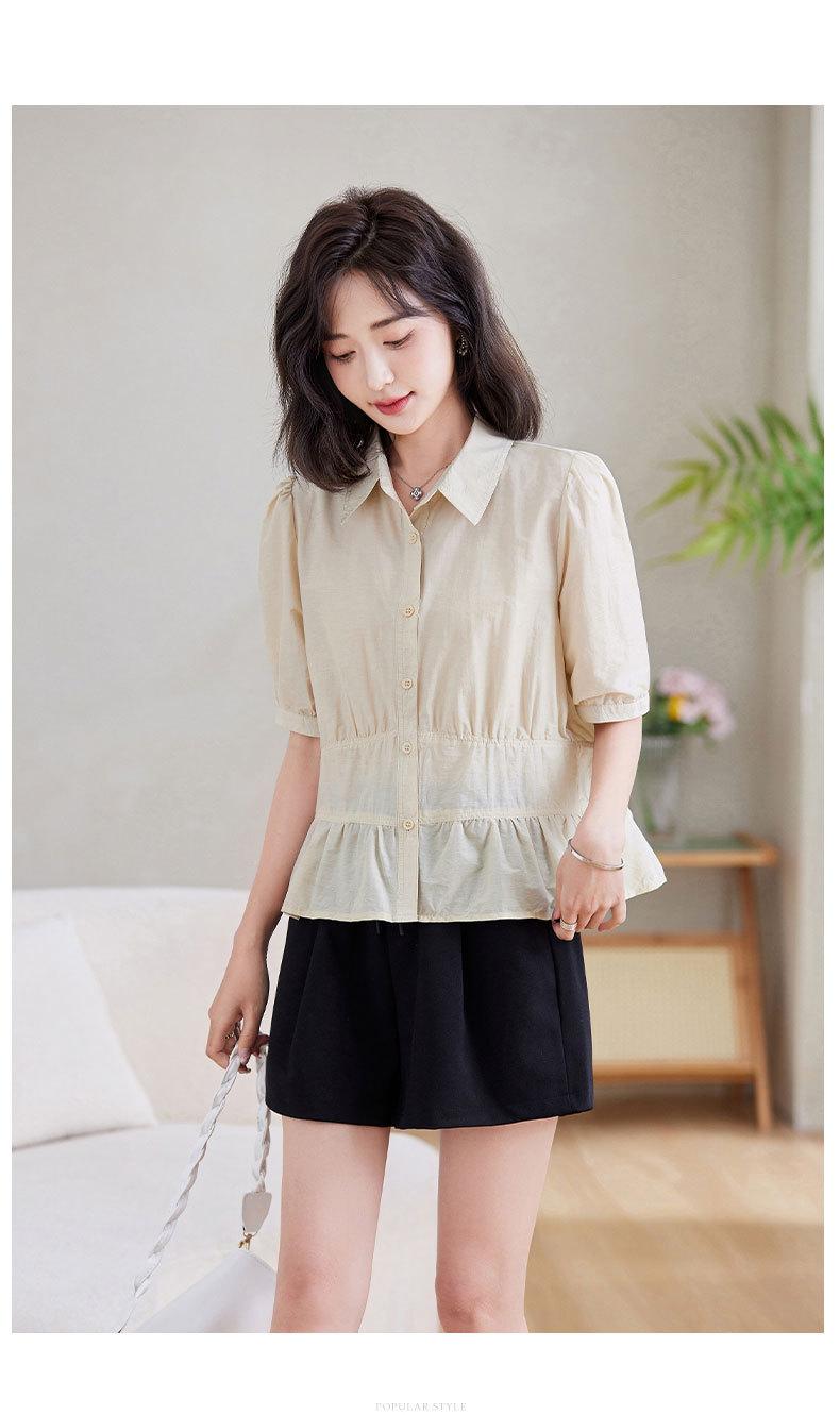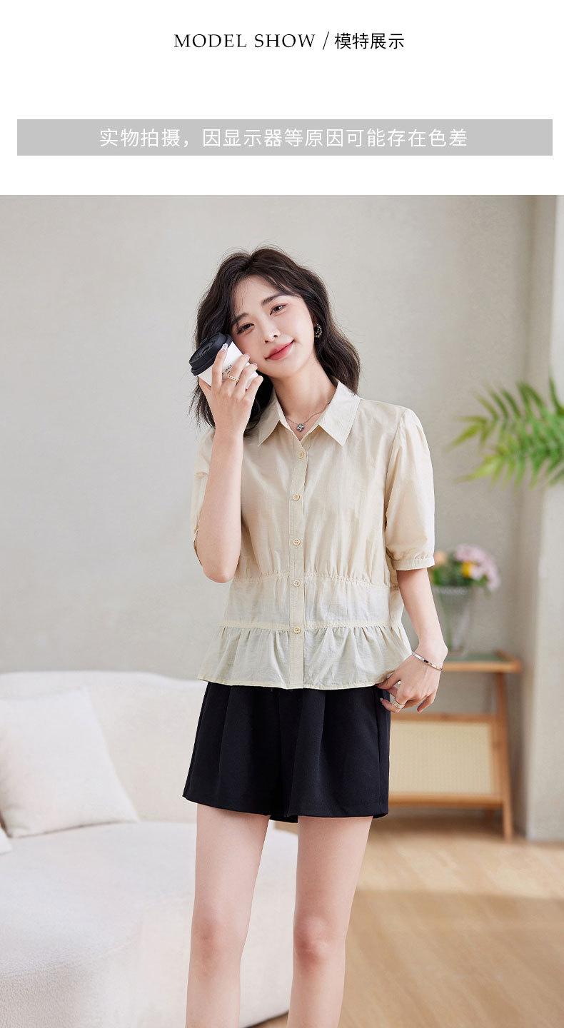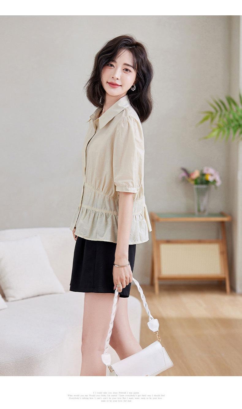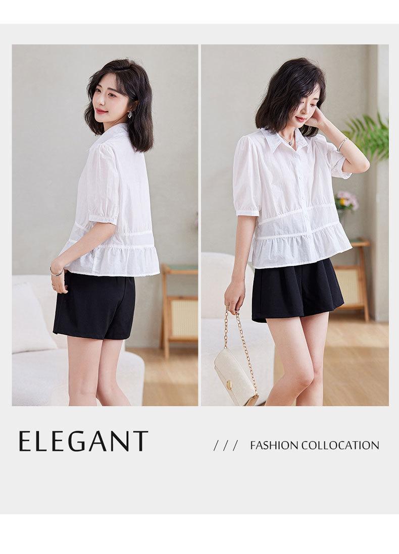 Conjunto de Moda de Camisa Retro Francesa y Shorts para Mujer Diseño de Verano 2024 Plisado Elegante Ajustado de Dos Piezas
