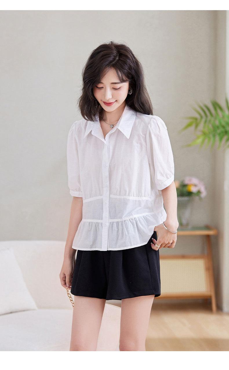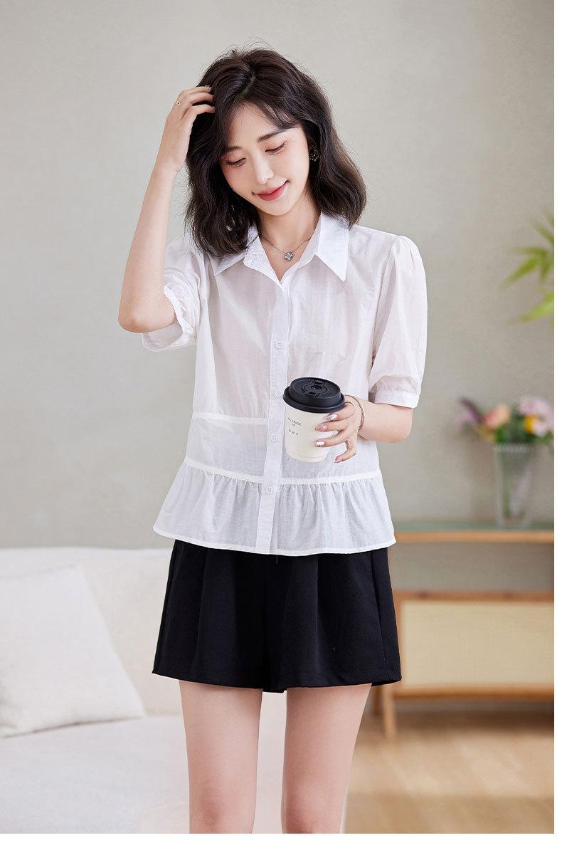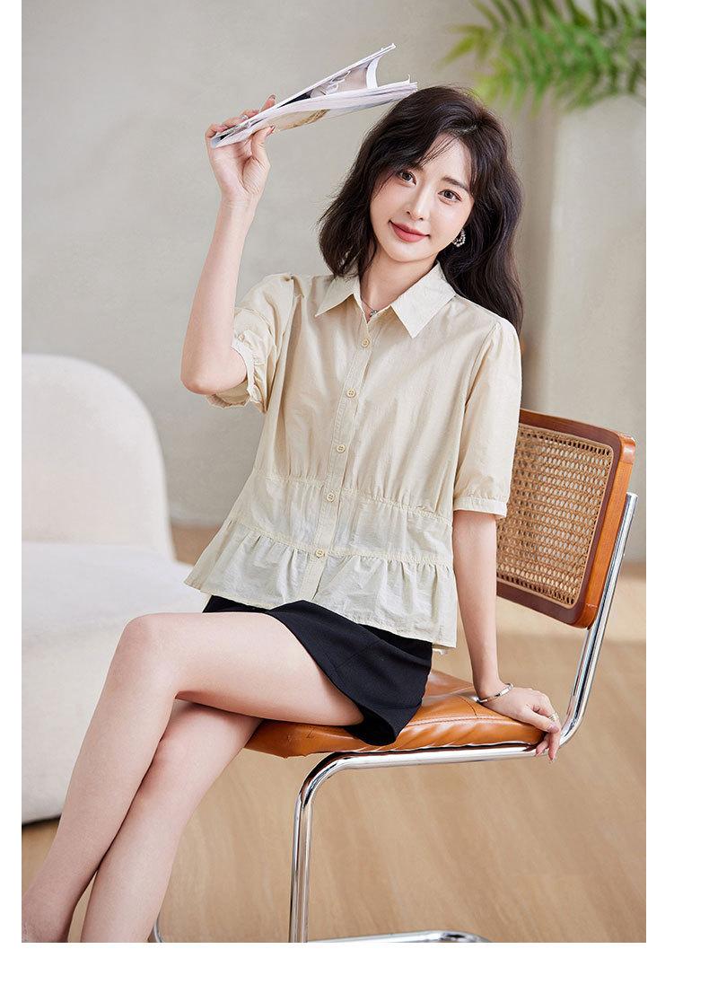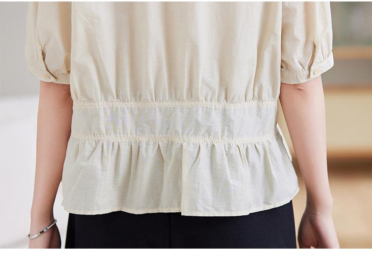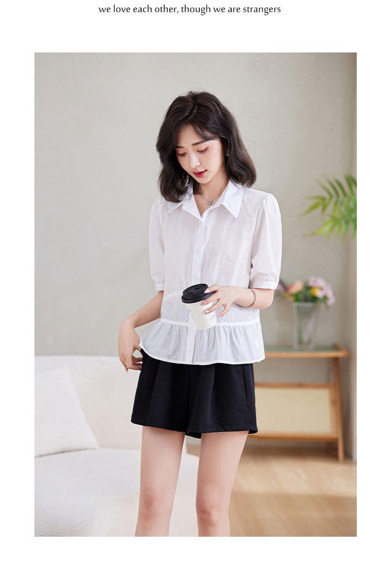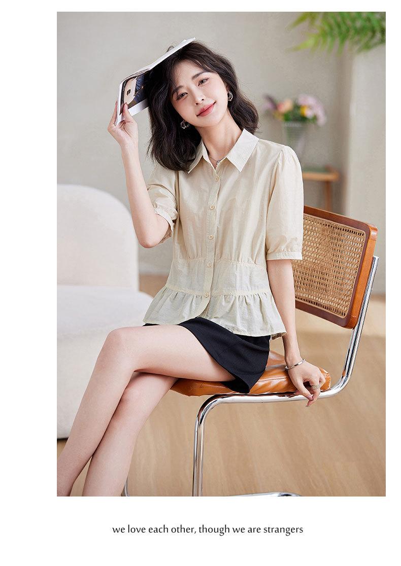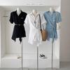 Conjunto de Moda de Camisa Retro Francesa y Shorts para Mujer Diseño de Verano 2024 Plisado Elegante Ajustado de Dos Piezas
