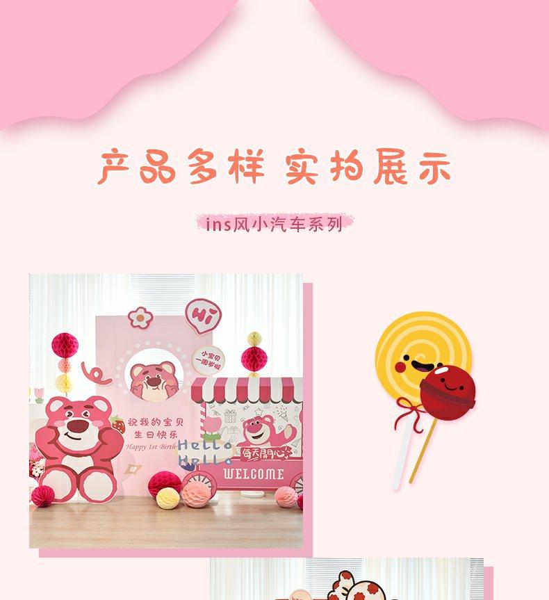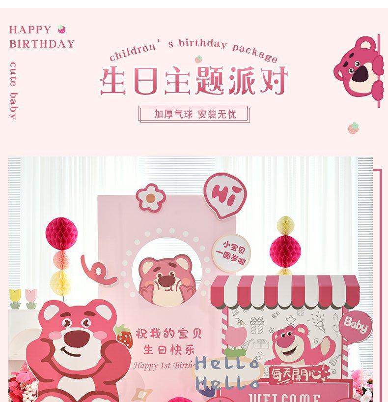Strawberry bear birthday honeycomb ball, Strawberry bear birthday balloon, Copy of the balloon, ins rainbow ca...