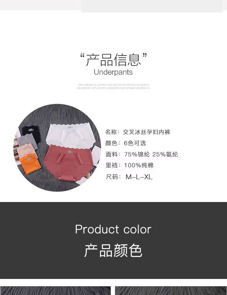 Ropa interior de maternidad sin costuras de seda de hielo para mujer, cintura baja, embarazo temprano, entrepierna de algodón puro, soporte abdominal antibacteriano, bragas para mediados y finales del embarazo