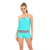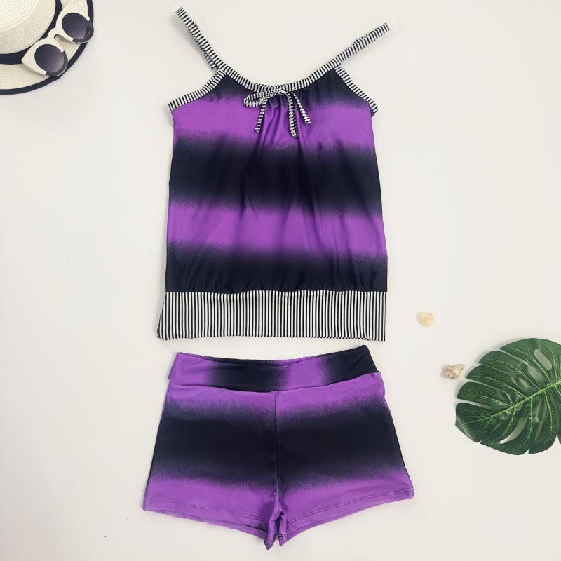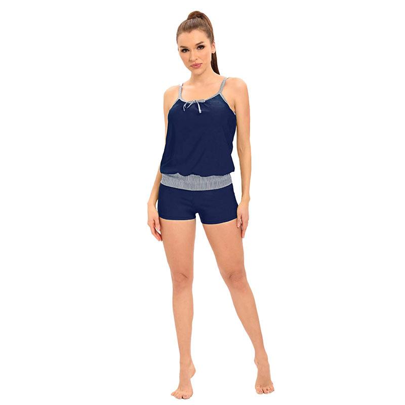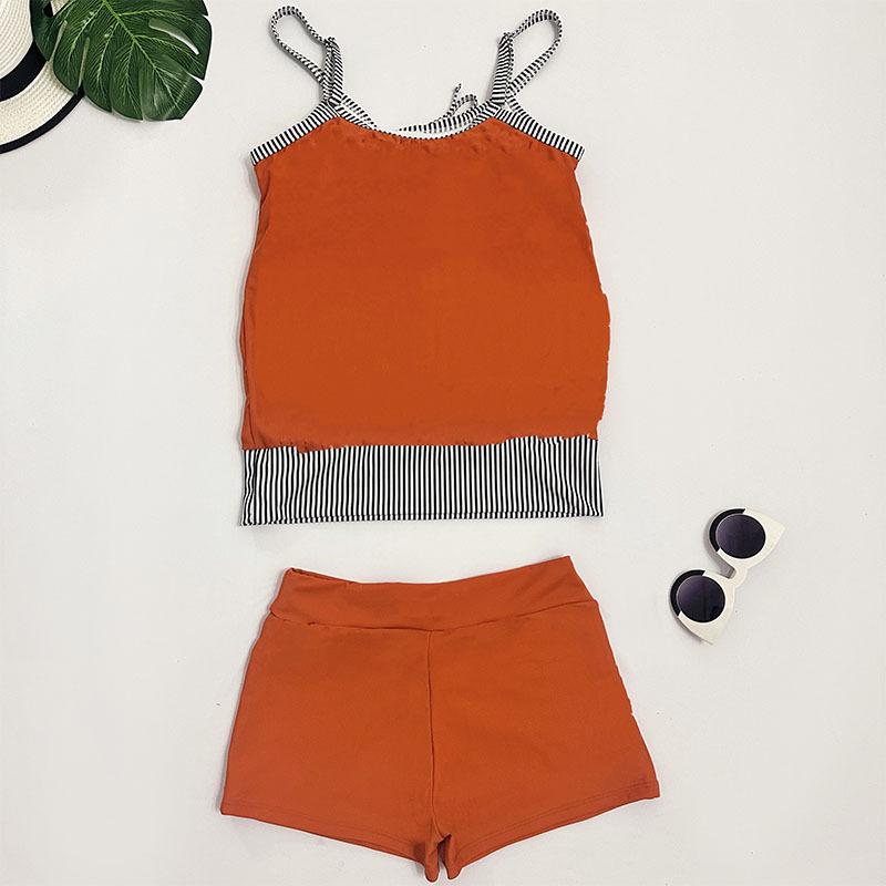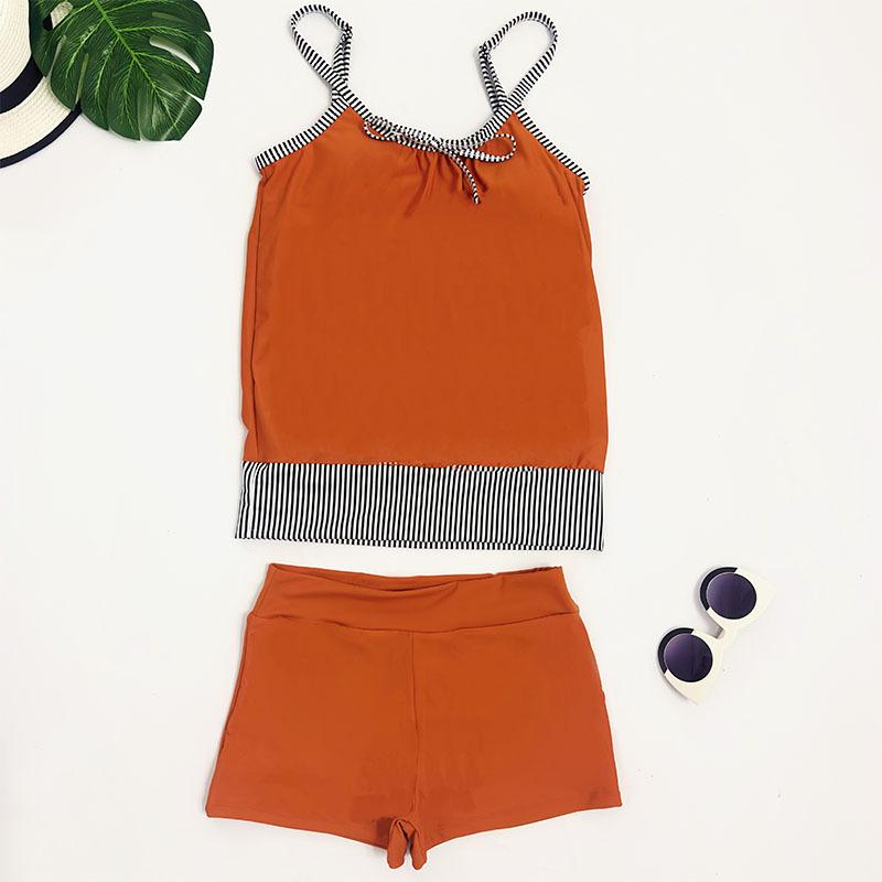 Nuevo Traje de Baño de Color Sólido de Cintura Alta con Abertura para Mujer, Cubre Vientre, Tirantes, Europeo y Americano, Sexy, Conservador, Sin Mangas, Shorts, Traje de Baño para Aguas Termales