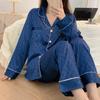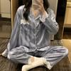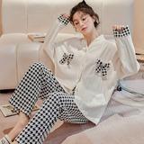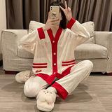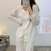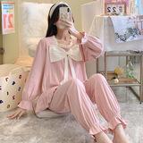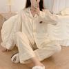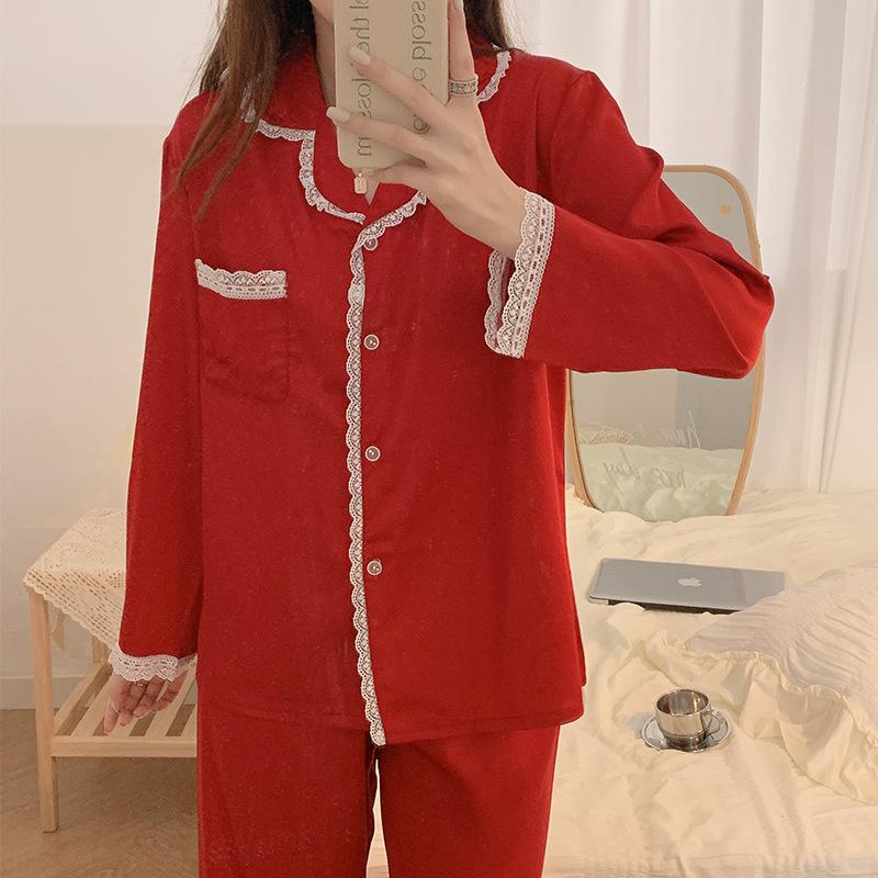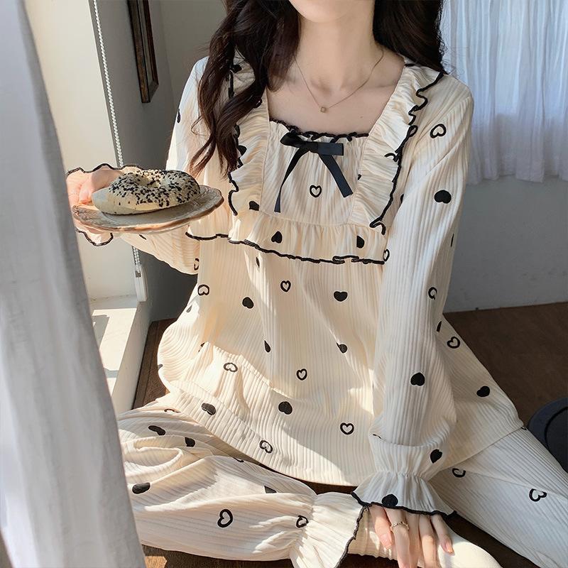 Pijamas de encaje bonitos de primavera y otoño 2022 para mujer, de algodón puro, de manga larga y pantalones largos, conjunto de ropa de hogar para estudiantes con un dulce amor. |