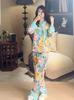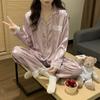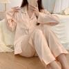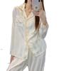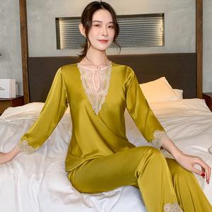 Pijama de seda de hielo para mujer, estilo primavera y otoño, ropa de casa para el año de nacimiento, damas de primavera, traje de dos piezas de seda de encaje de alta calidad |