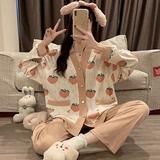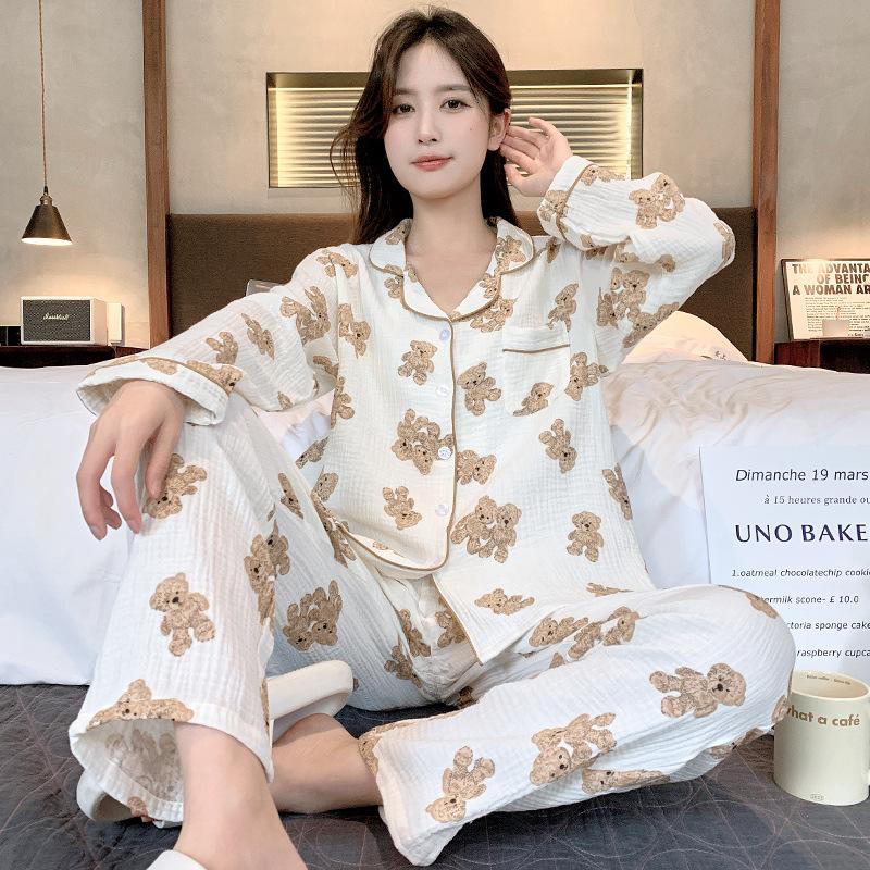 Pijamas de osito de peluche para mujer, de gasa, primavera y otoño, de algodón puro, de manga larga, para el hogar, bonito traje de algodón para otoño e invierno, 2023 |