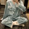 Pijamas para mujeres parejas color sólido casual mangas largas ropa de hogar para hombres jóvenes primavera y otoño simple nuevo traje de seda de algodón |