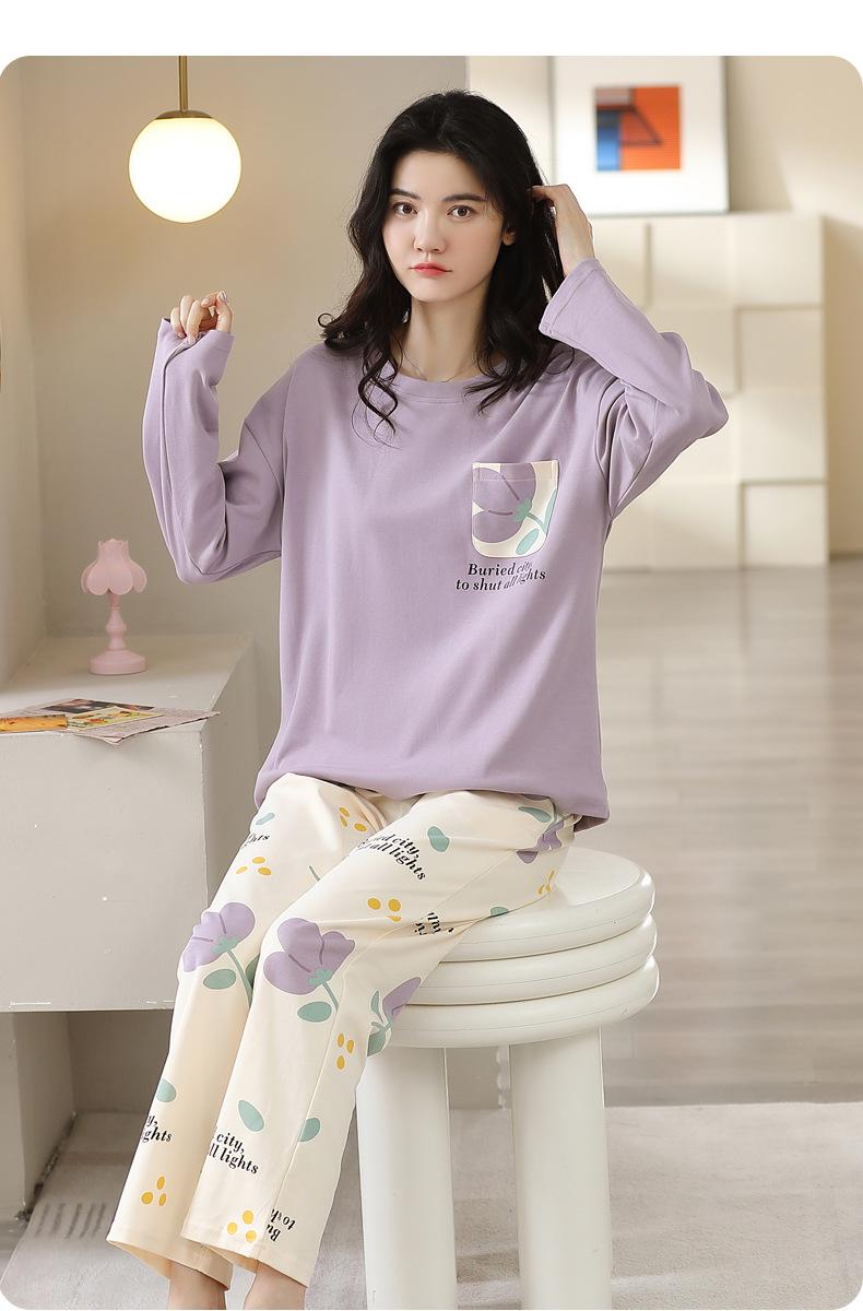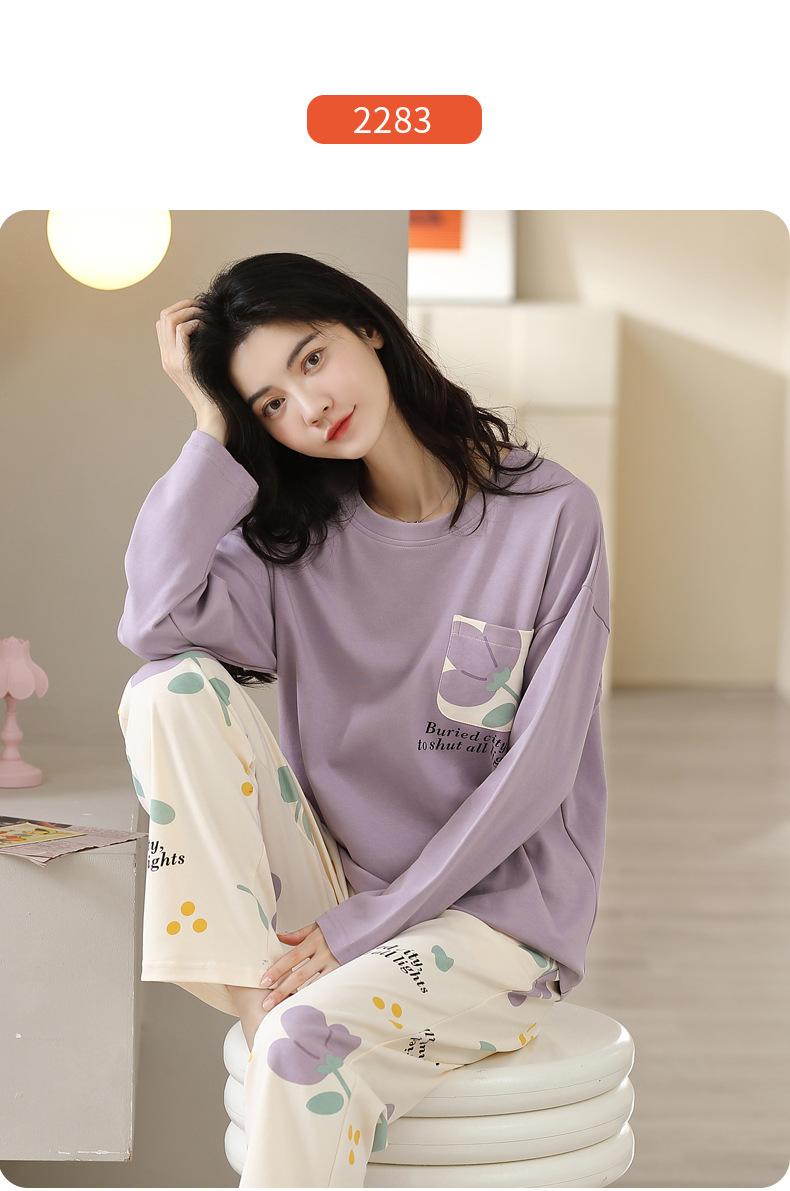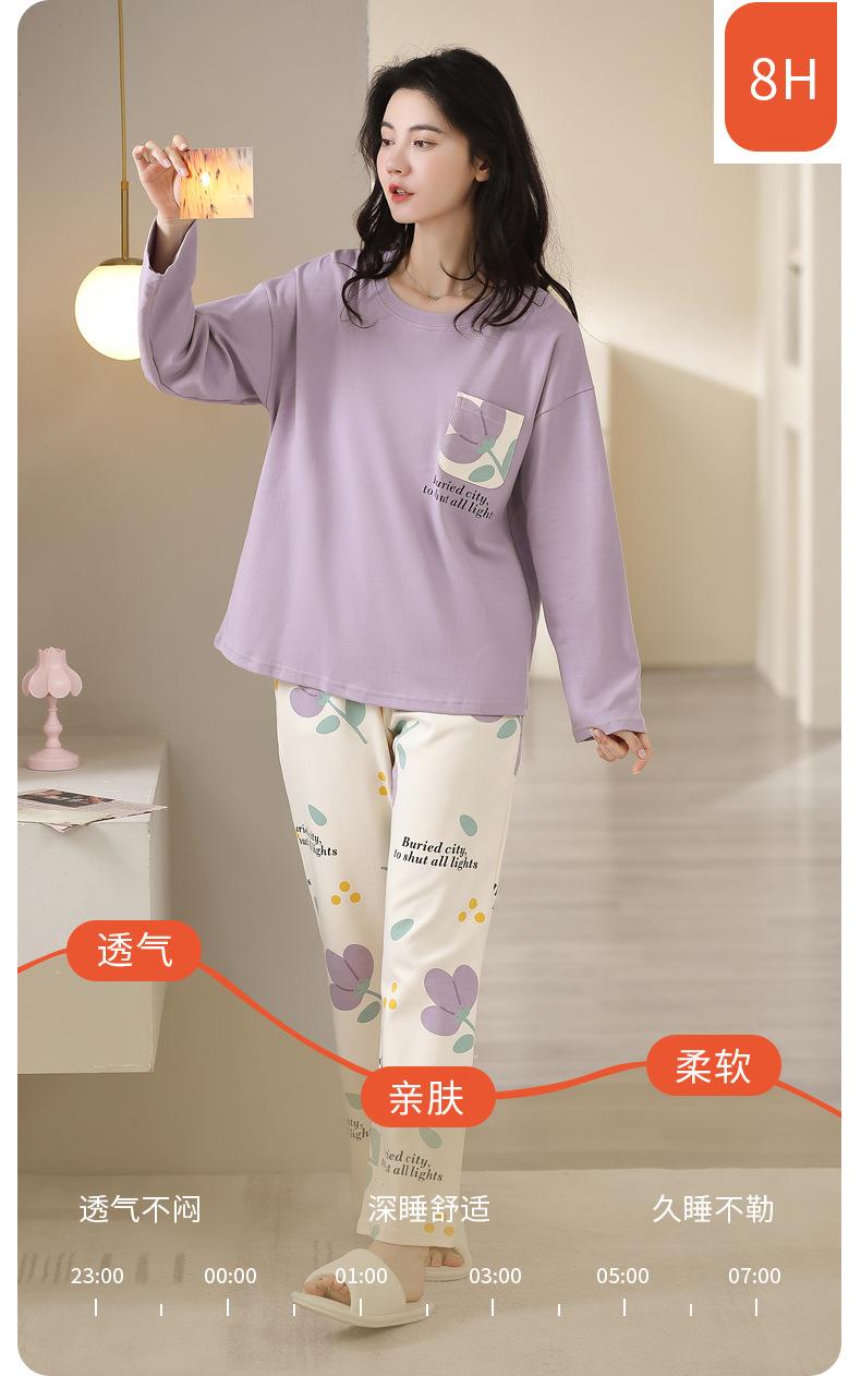 Pijamas de mujer de primavera y otoño, jersey de algodón de manga larga, holgado, de talla grande, nuevo traje de algodón para mujer para otoño e invierno, ropa de casa