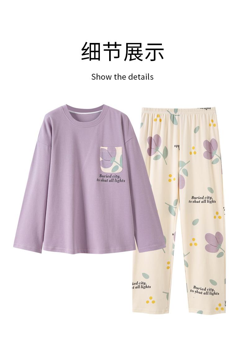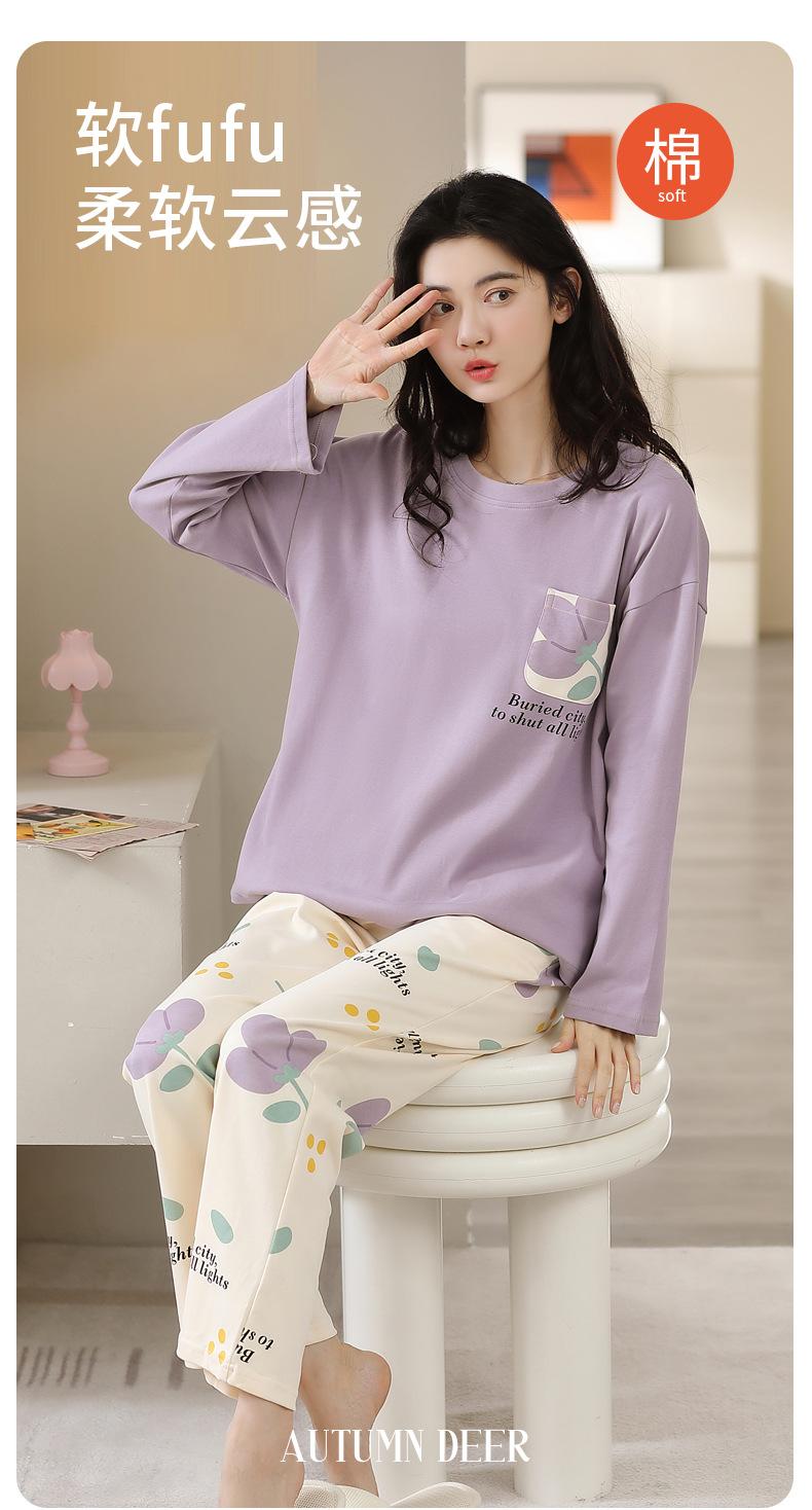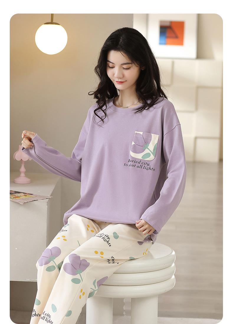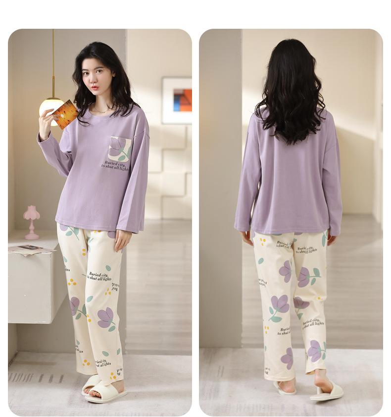 Pijamas de mujer de primavera y otoño, jersey de algodón de manga larga, holgado, de talla grande, nuevo traje de algodón para mujer para otoño e invierno, ropa de casa
