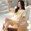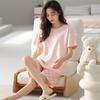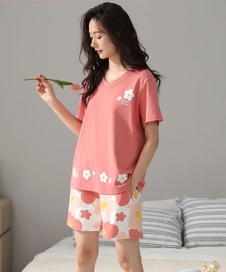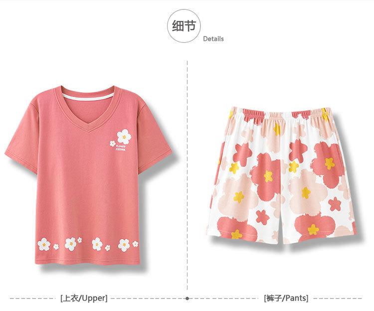 Pijama 100 % algodón para mujer, conjunto de verano con cuello en V y manga corta, informal, talla grande, 200 Jin, ropa exterior para el hogar, verano