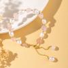 Collar y pulsera de cuentas de piedra natural, perla natural, color caramelo claro, hecho a mano, diseño simple, joyería para niña