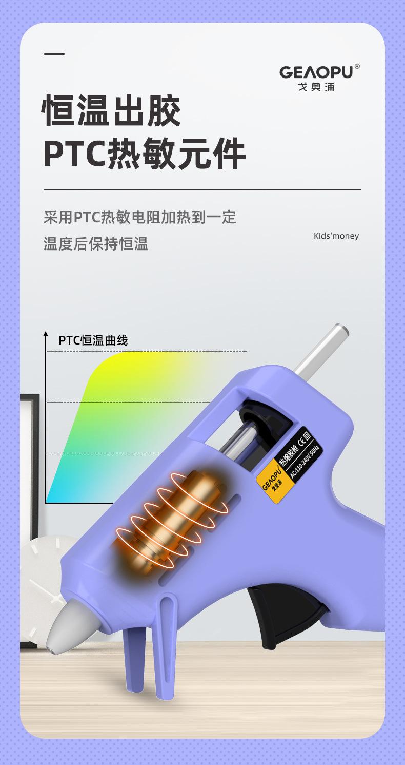 Girl powder children's anti-scalding hot melt gun 3 rubber grab, Blue children's hot melt gun 3 glue, Purple c...
