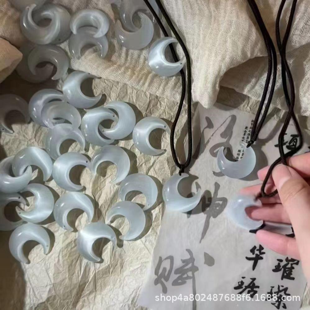 Collar de luz de luna blanca TikTok para mujer, novia, estudiante, colgante de viento, nicho, lindo ojo de gato, piedra lunar, regalo