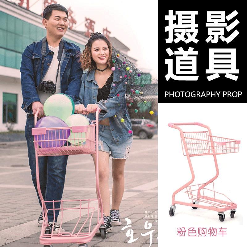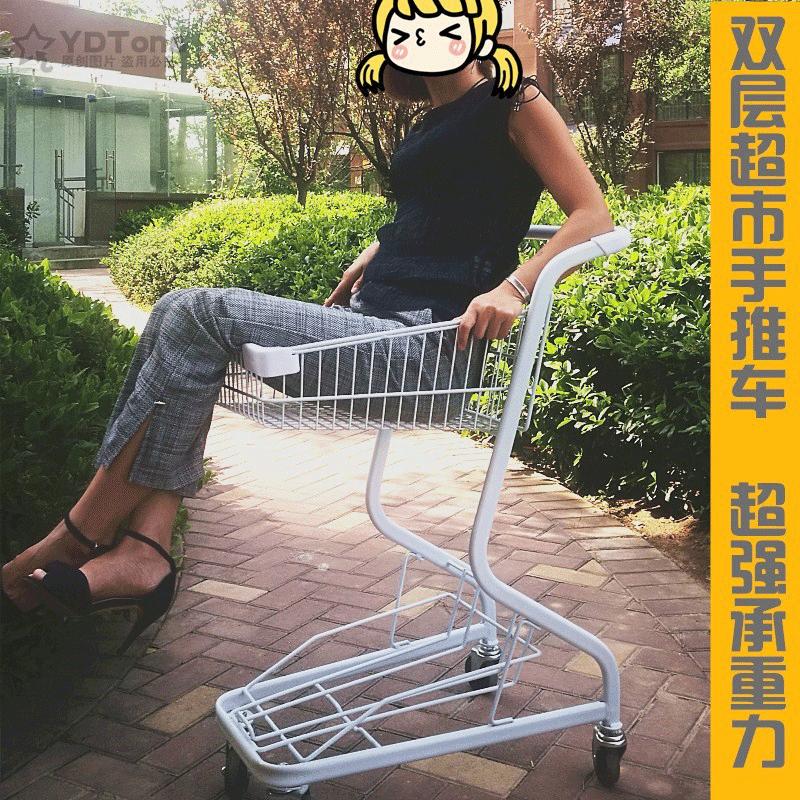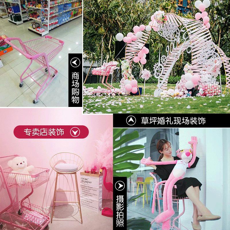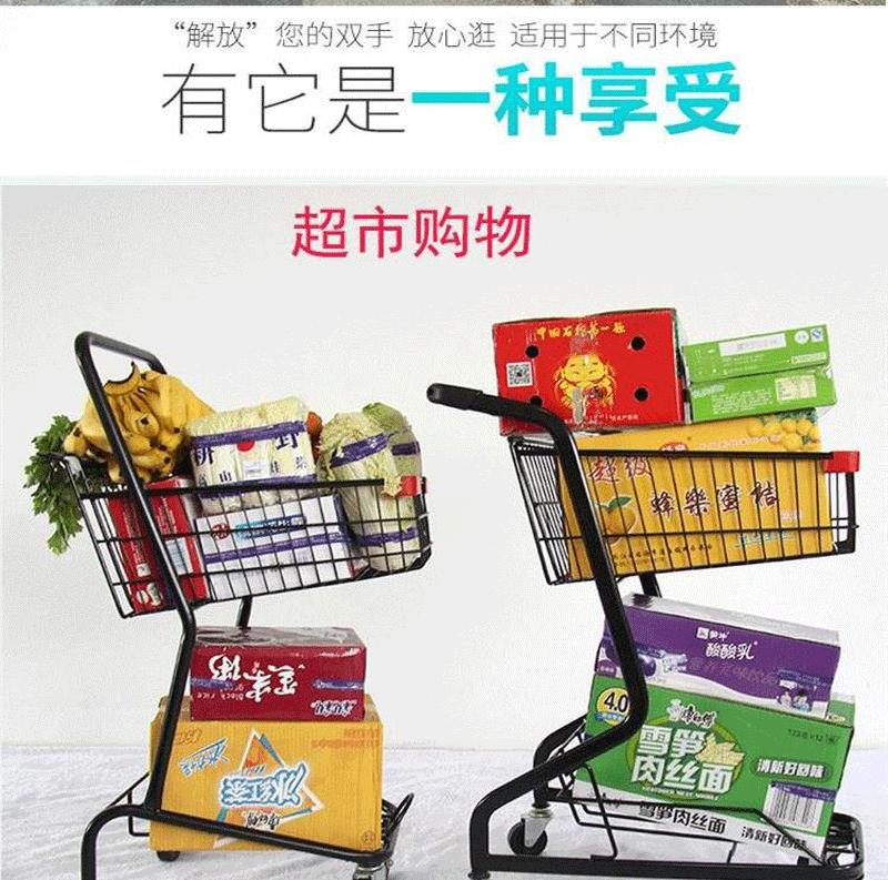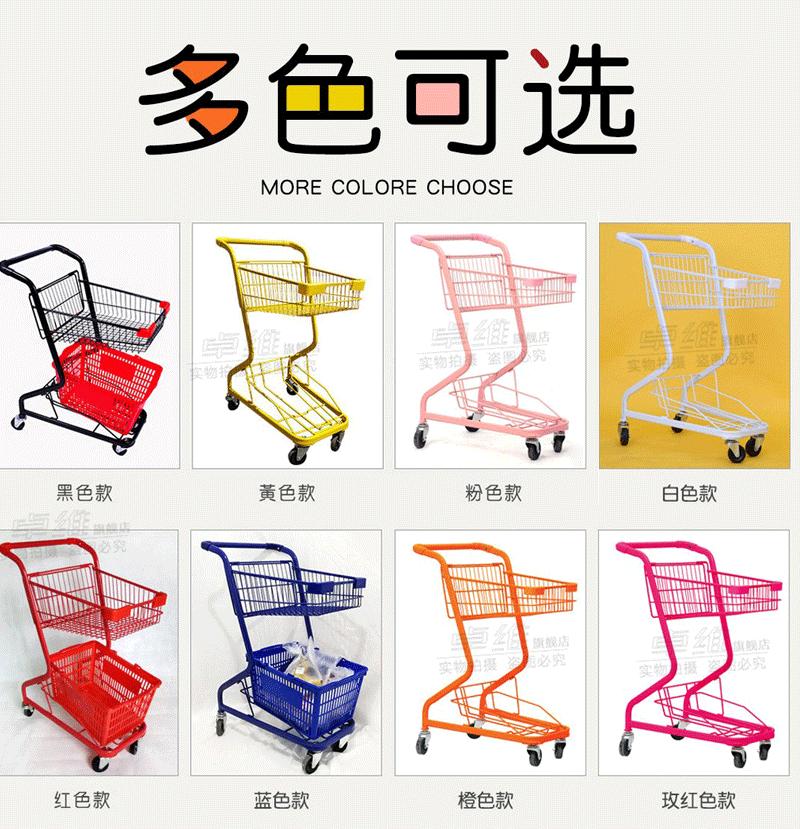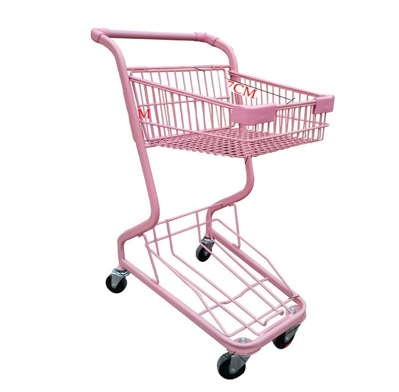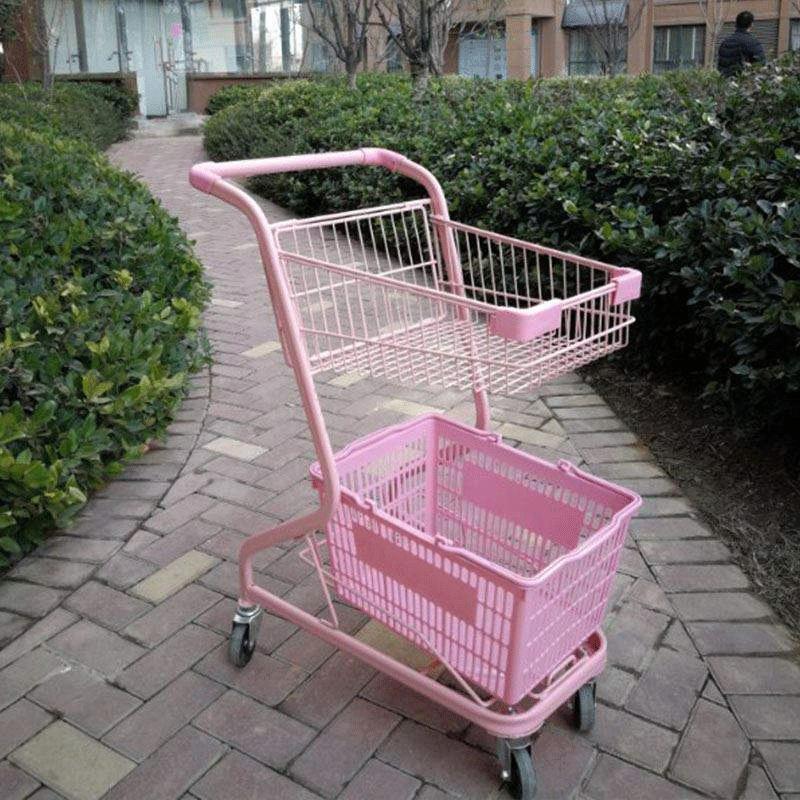 Carrito de compras rosa de doble capa, carrito de compras rosa de doble capa, carrito de compras de doble capa con cesta de compra.