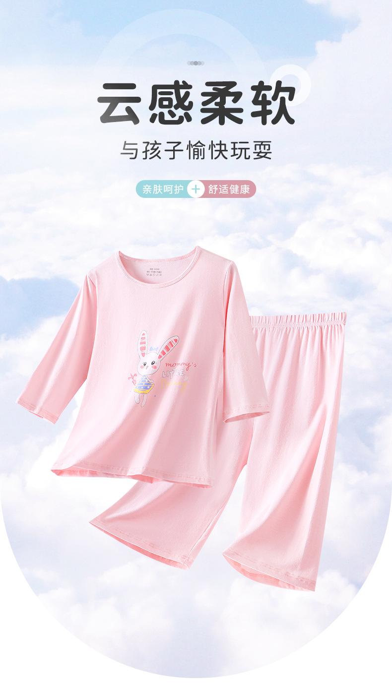 Gran Venta Pijamas para Niños Primavera y Otoño Niños Algodón Puro Mangas Tres Cuartos Niñas Pequeñas Medianos y Grandes Niños Delgados Ropa de Casa para Bebé