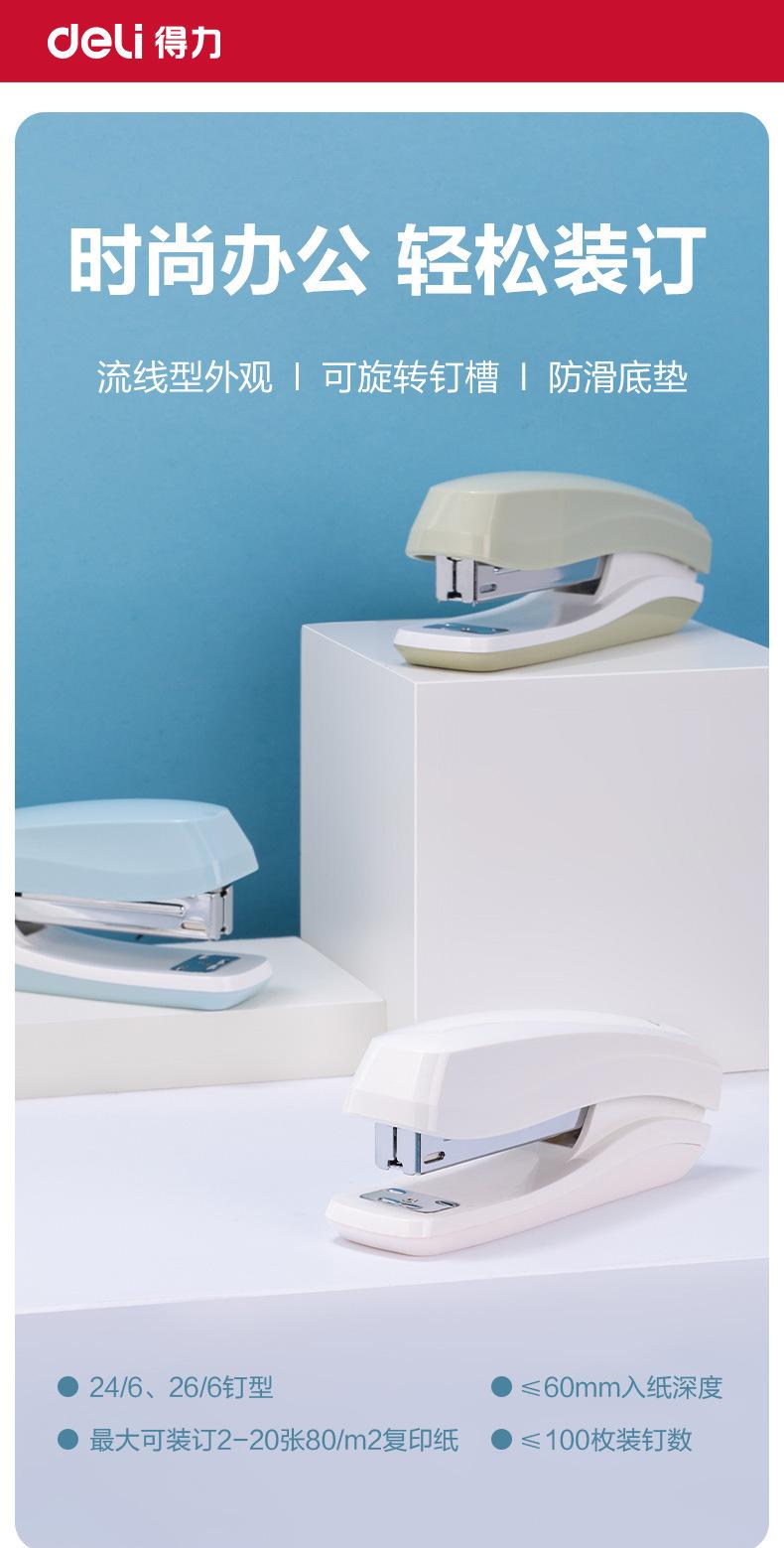 Grapadora de escritorio Deli 0350 Morandi de color, multifuncional, giratoria, con ranura inferior para clavos, para oficina y aprendizaje