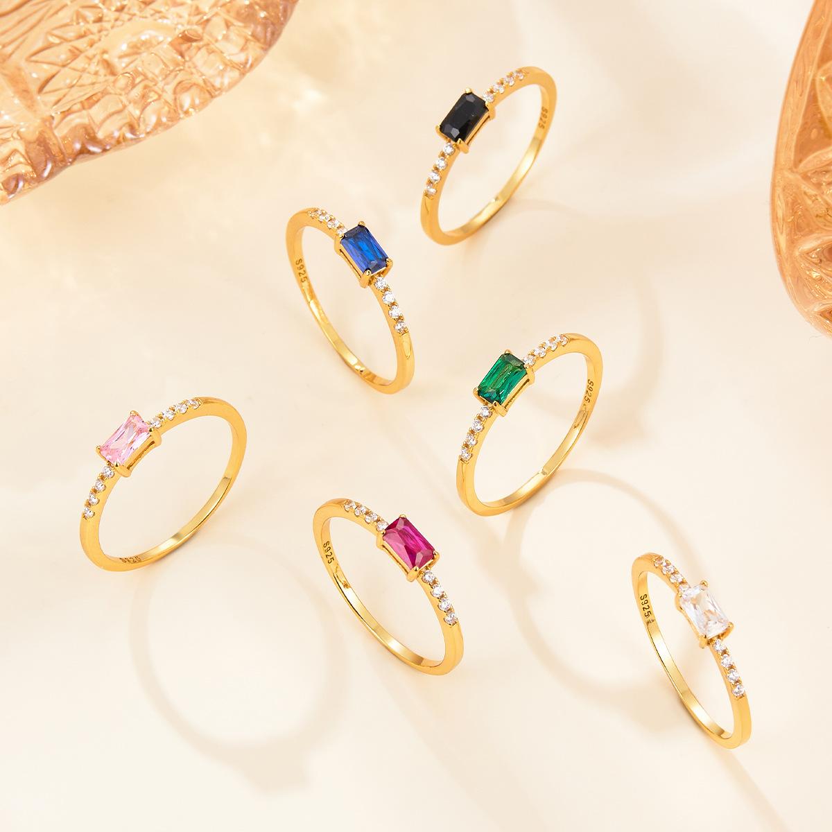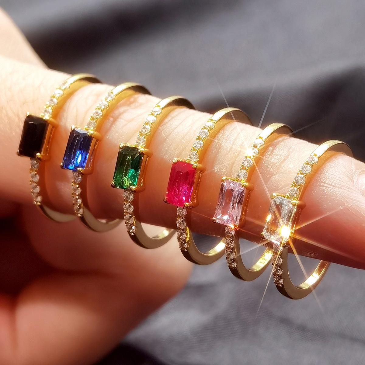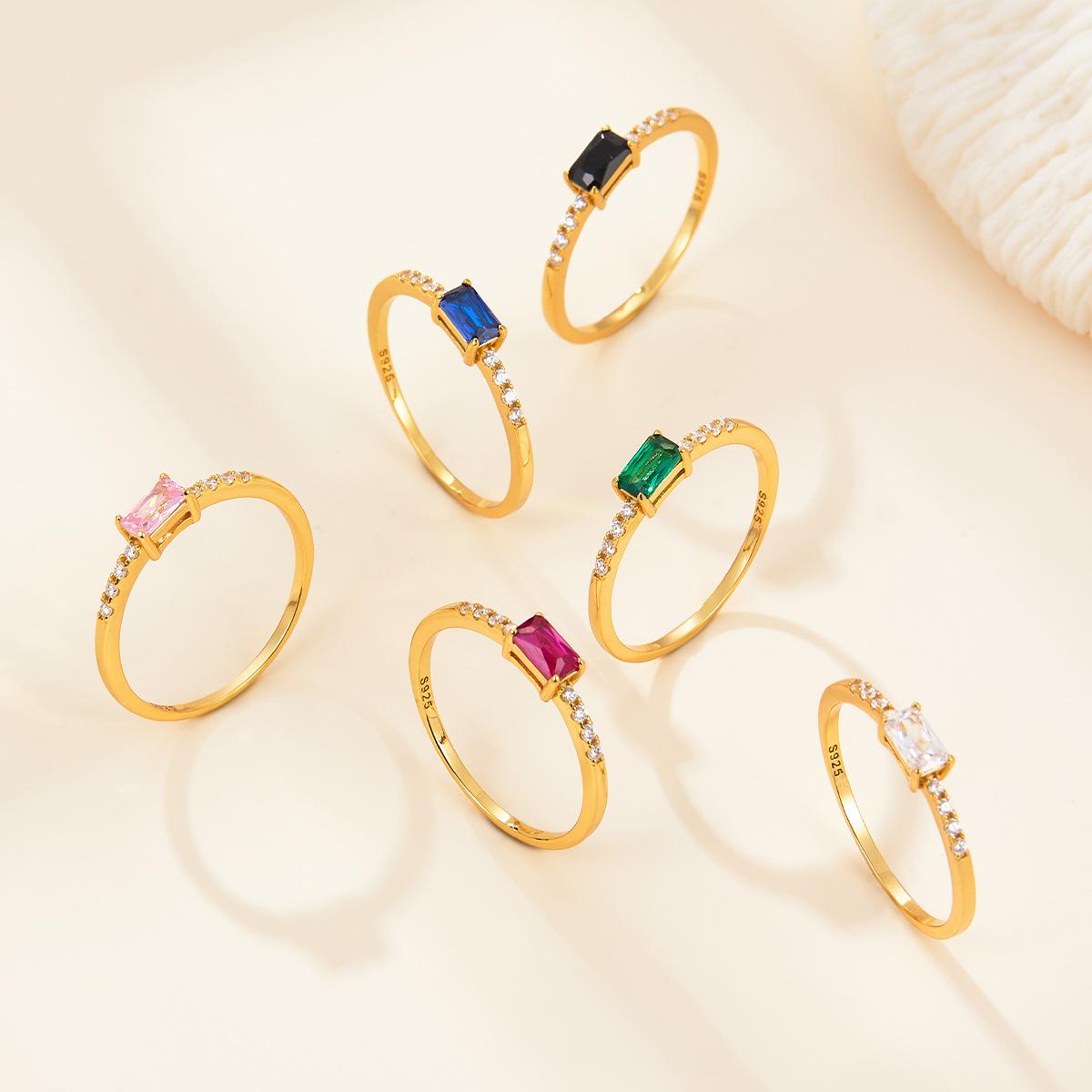 Anillo de Plata Esterlina S925 Lujo Accesible Anillo Simple Nicho de Color Zirconio Anillo de Oro Joyería al Por Mayor Suministro Transfronterizo para Mujer