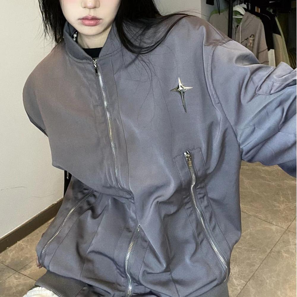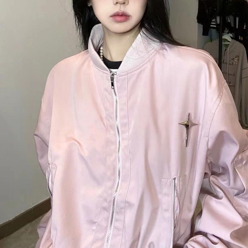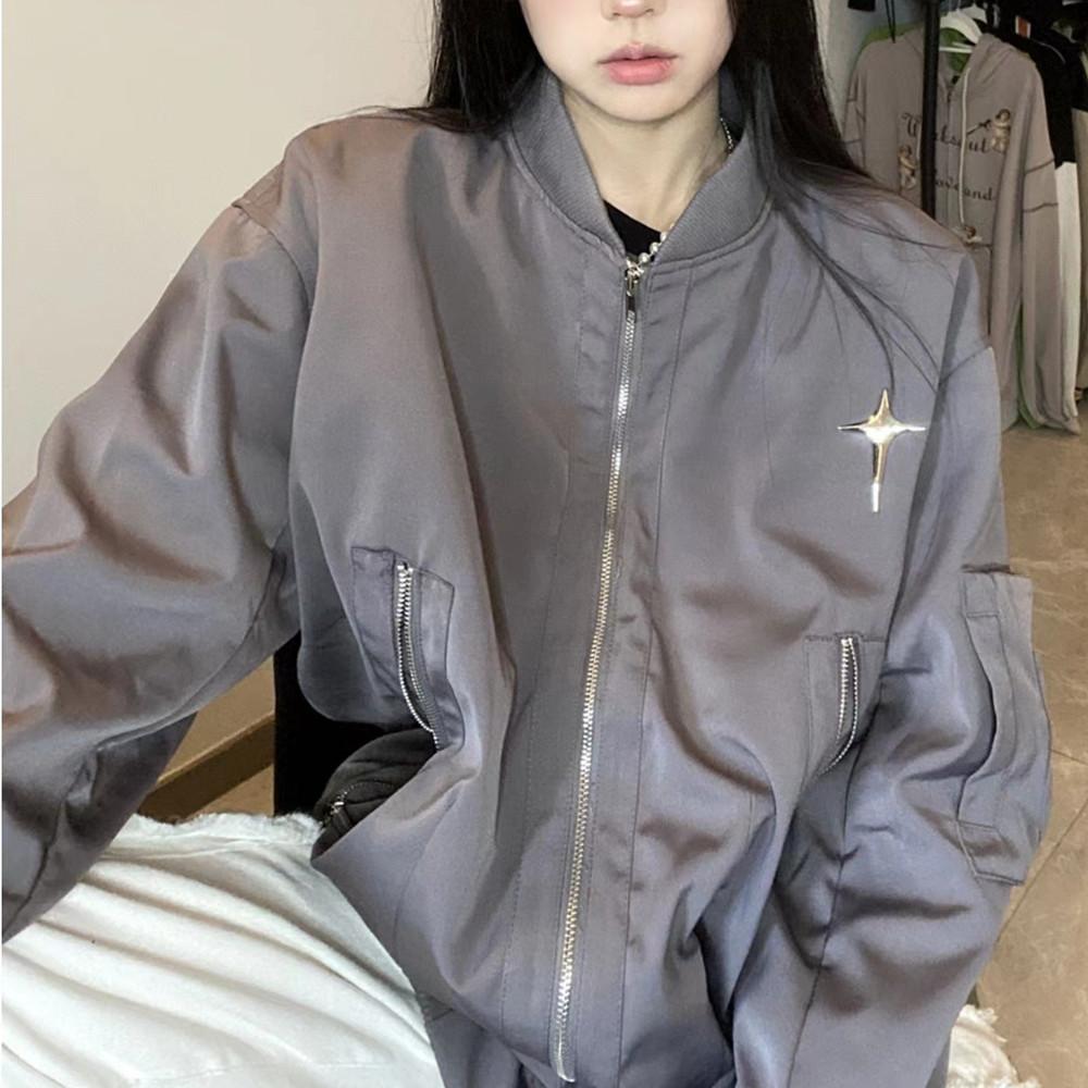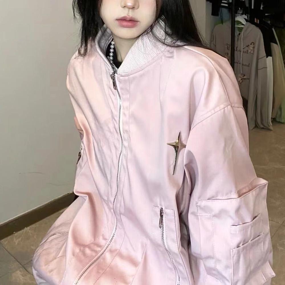Chaqueta de trabajo vintage americana retro con múltiples cremalleras para mujer, marca de moda, holgada, estilo Harajuku, uniforme de béisbol, chaqueta a juego
