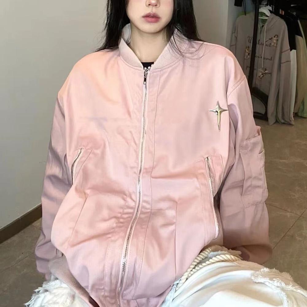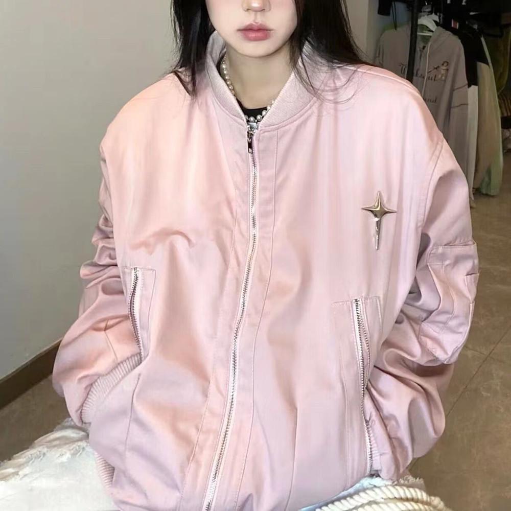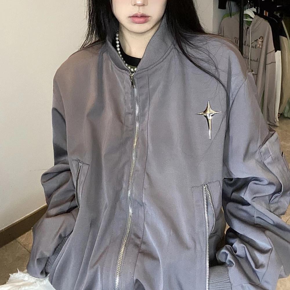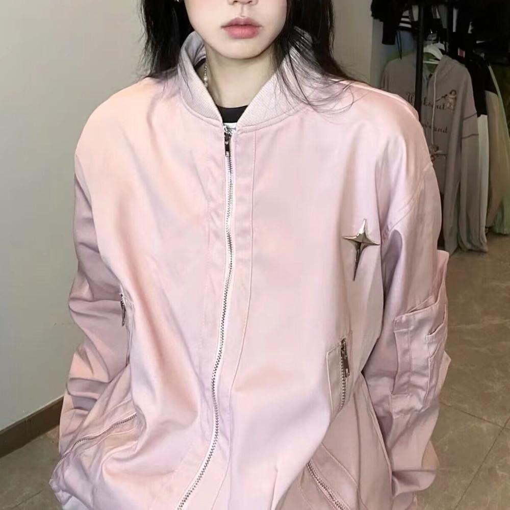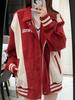 Chaqueta de trabajo vintage americana retro con múltiples cremalleras para mujer, marca de moda, holgada, estilo Harajuku, uniforme de béisbol, chaqueta a juego