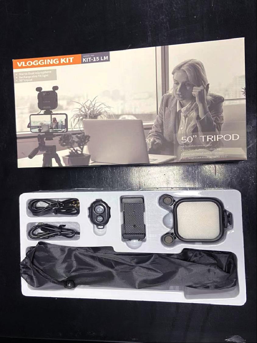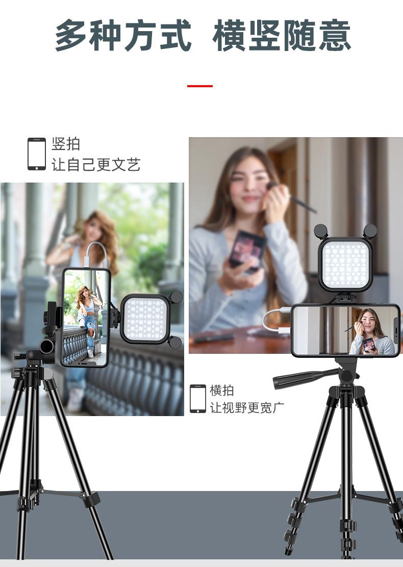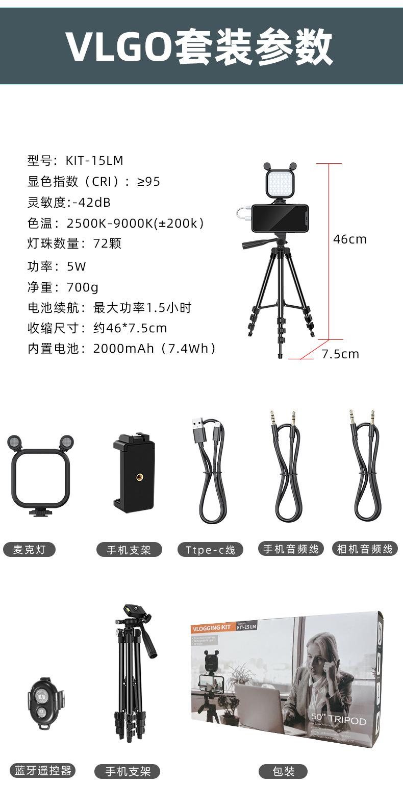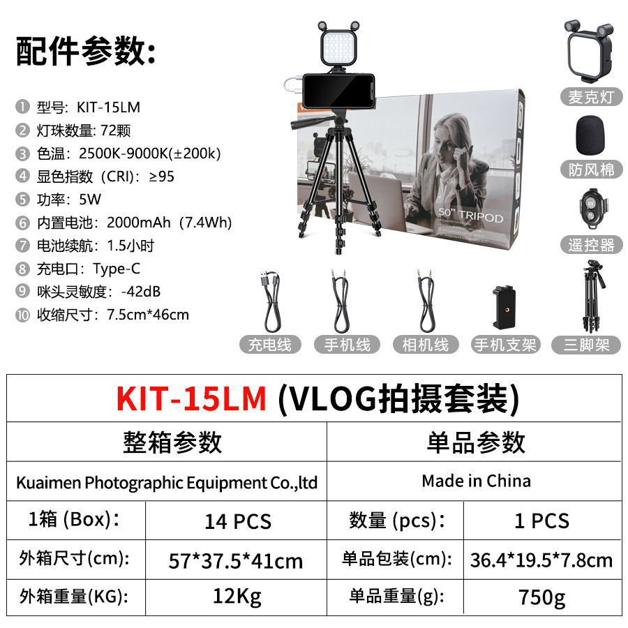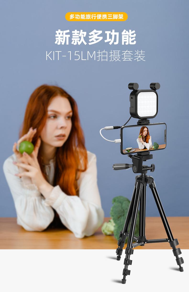 Kit de grabación KIT-15LM de suministro directo transfronterizo, kit de trípode para grabación en vivo con teléfono móvil y artefacto VLOG